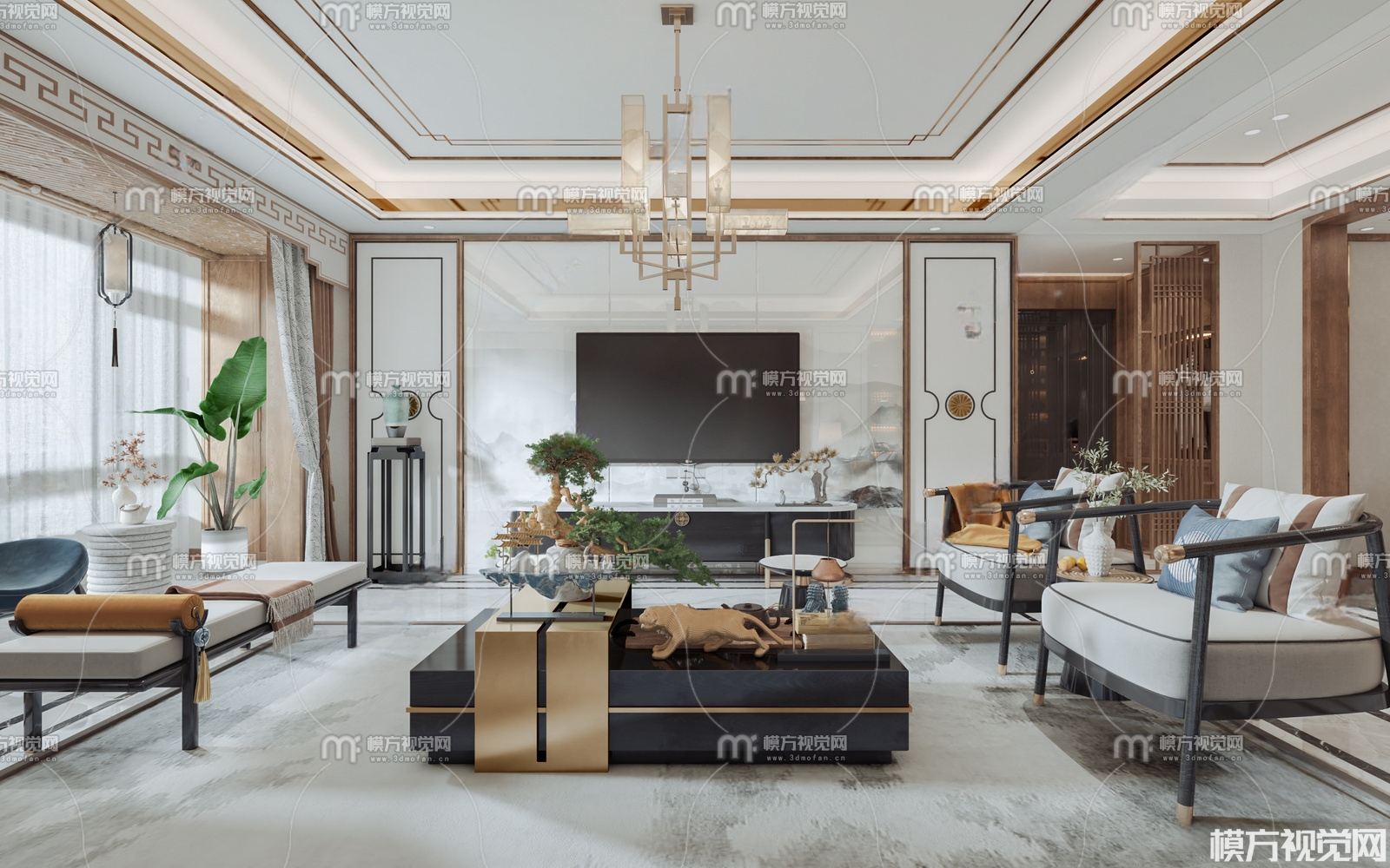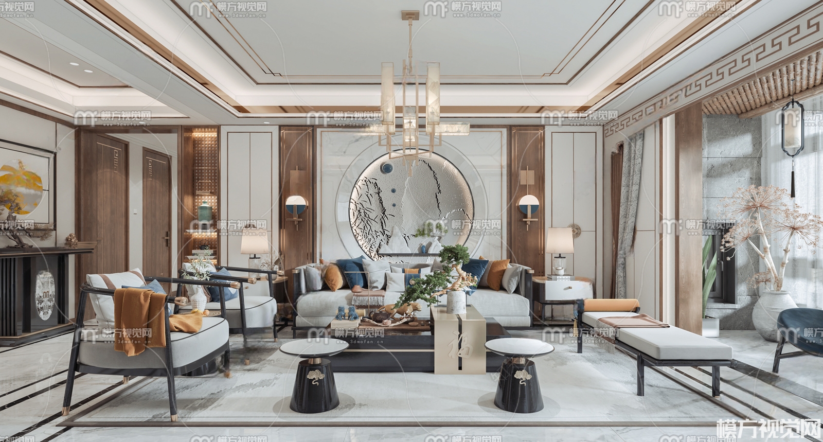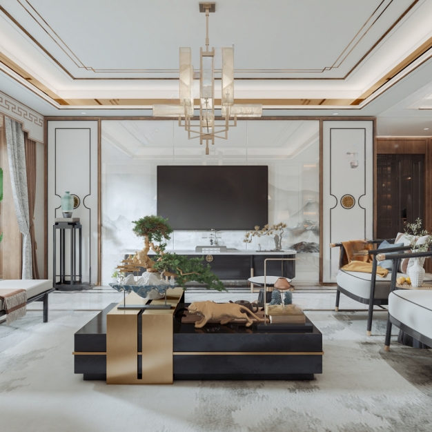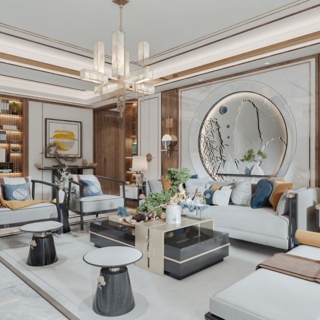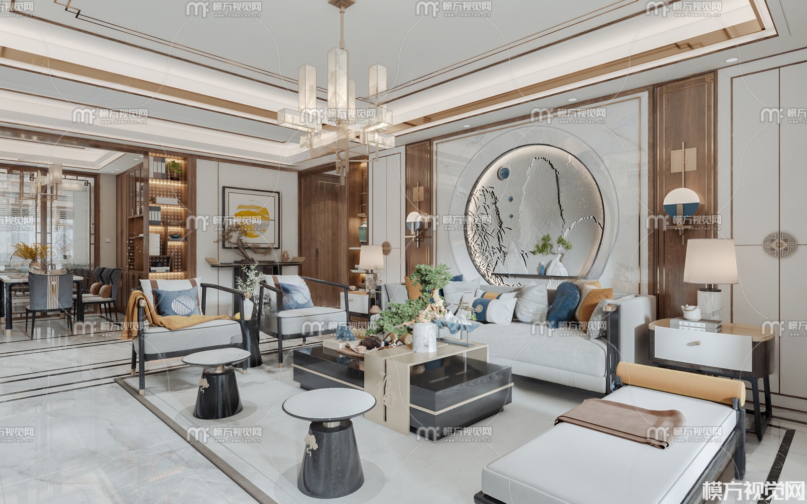 新中式客餐厅3D模型(ID:0011068)