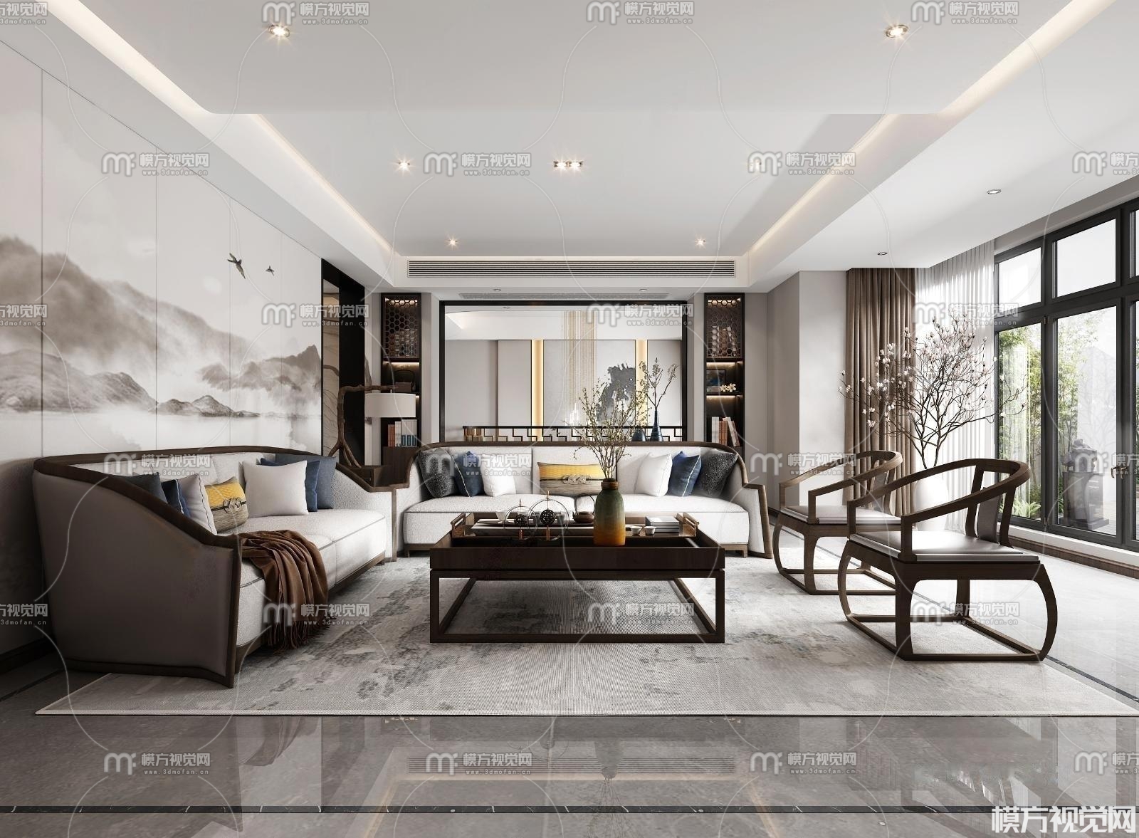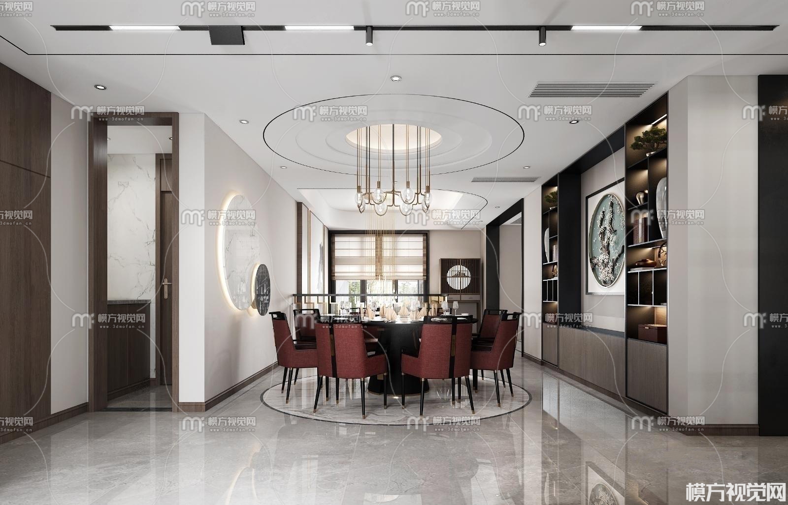 新中式客厅餐厅门厅3D模型(ID:0011105)