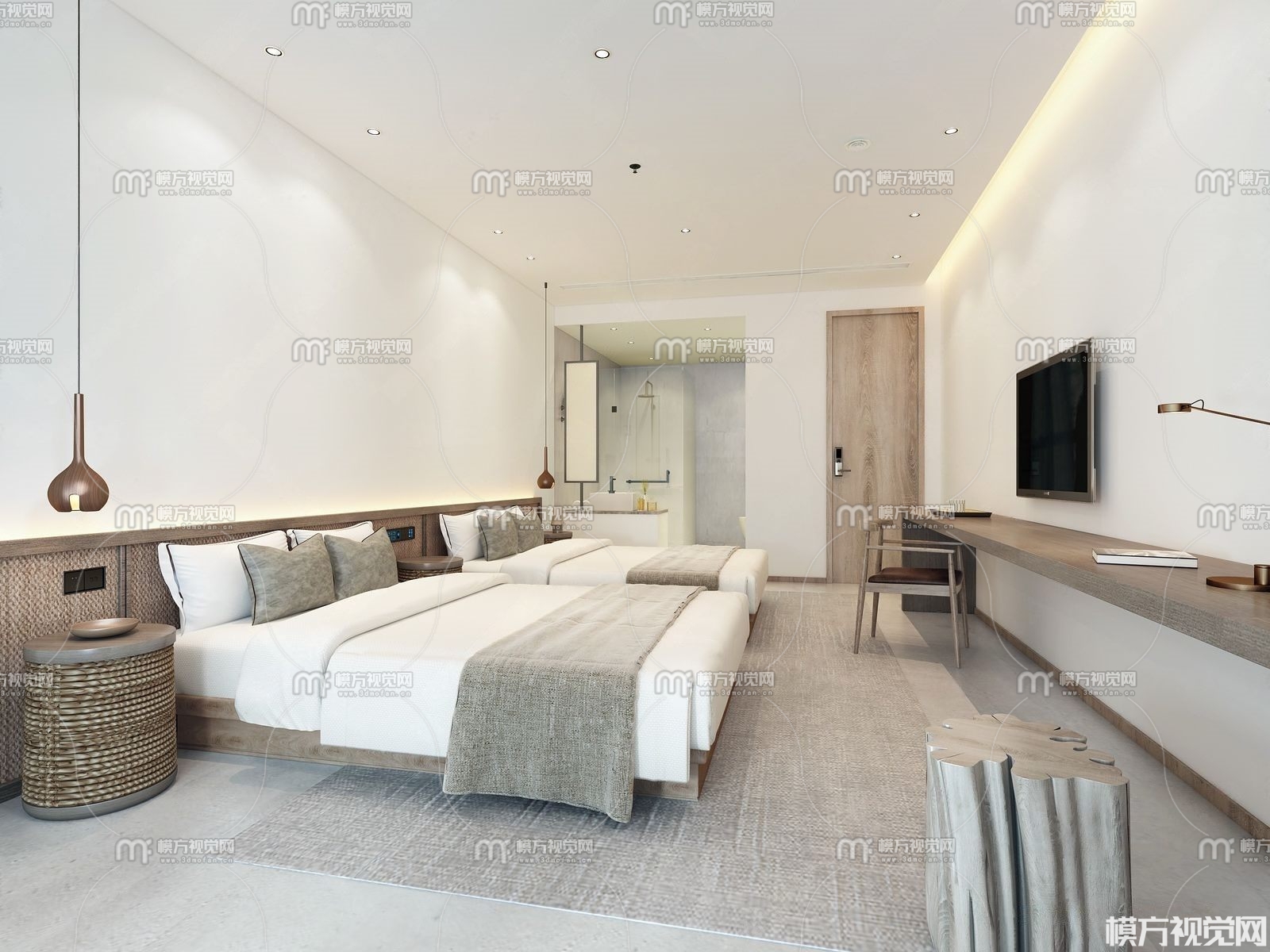 新中式民宿酒店客房3D模型(ID:0011139)