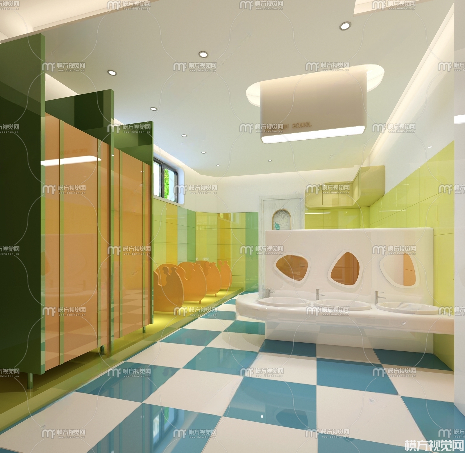 现代幼儿园教室卫生间3D模型(ID:0011171)
