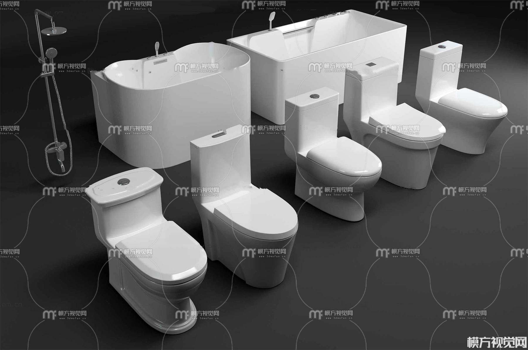 现代浴室马桶浴缸花洒组合3D模型(ID:0011205)