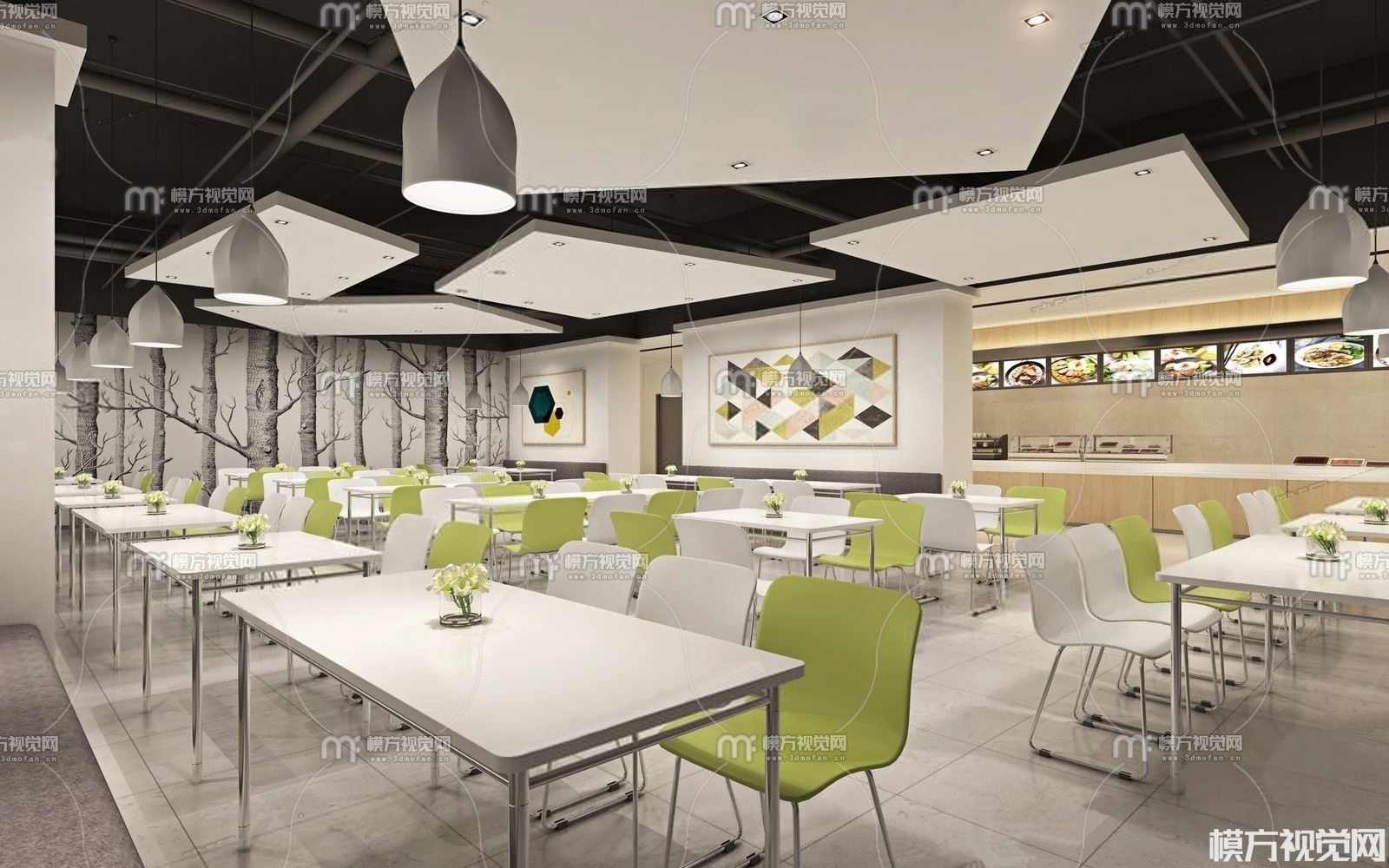 现代员工餐厅3D模型(ID:0011210)