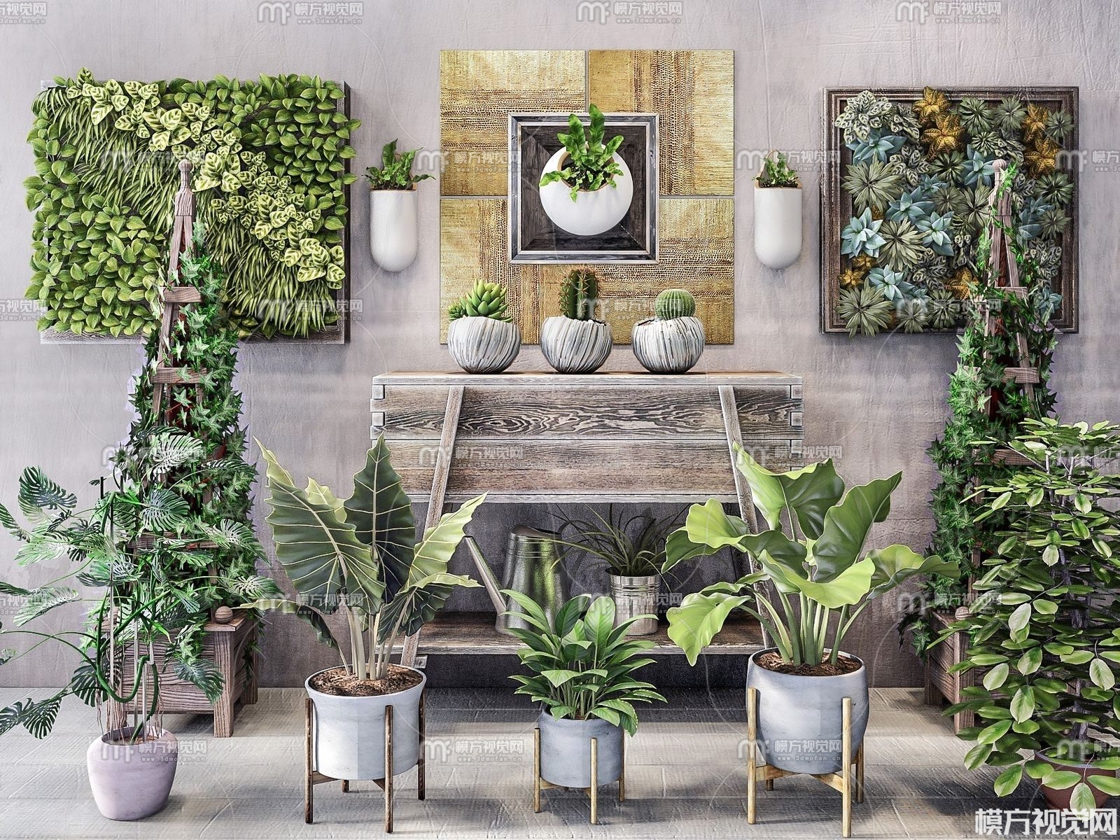 现代植物盆栽组合3D模型(ID:0011236)