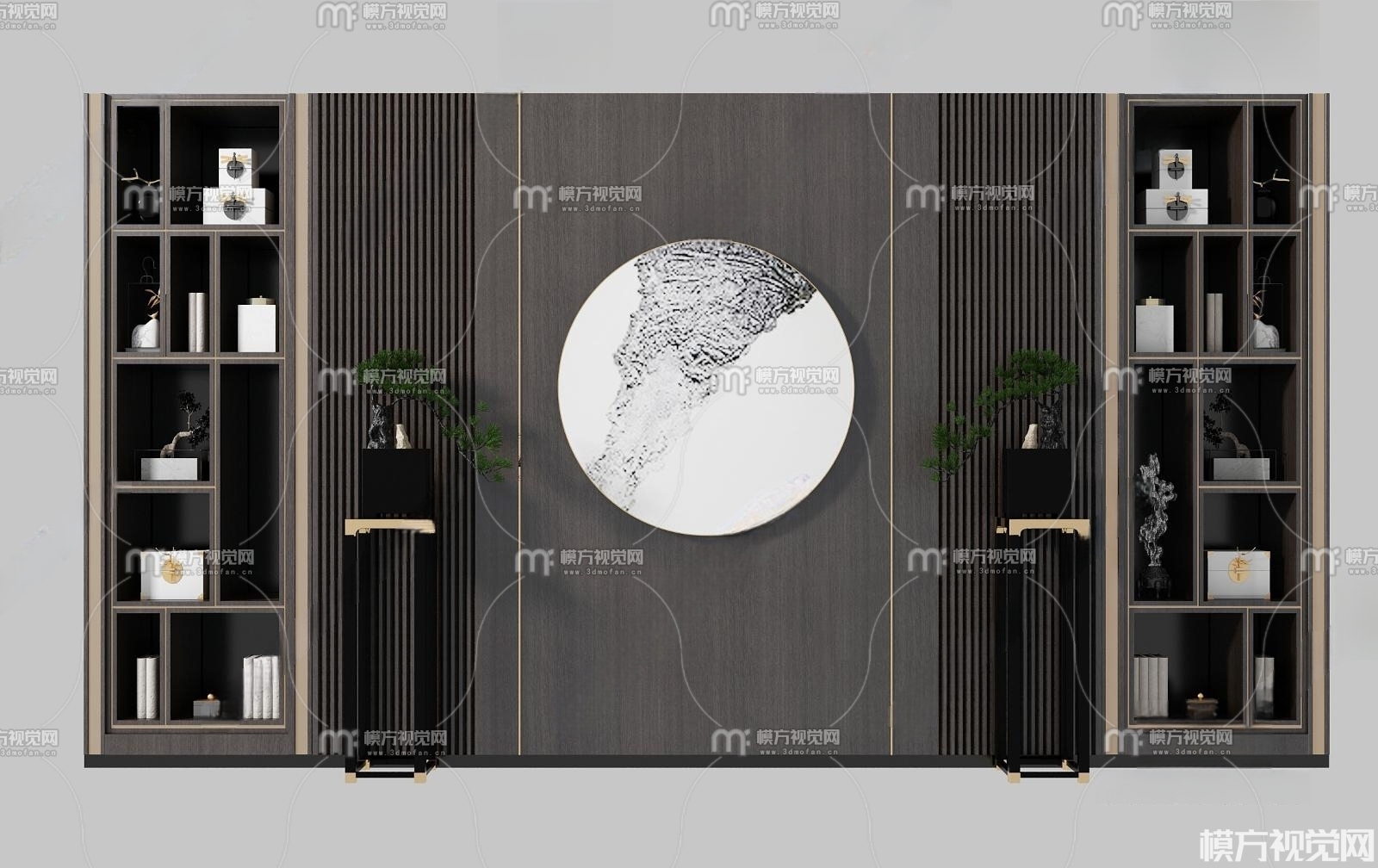 新中式博古架背景墙3D模型(ID:0011343)
