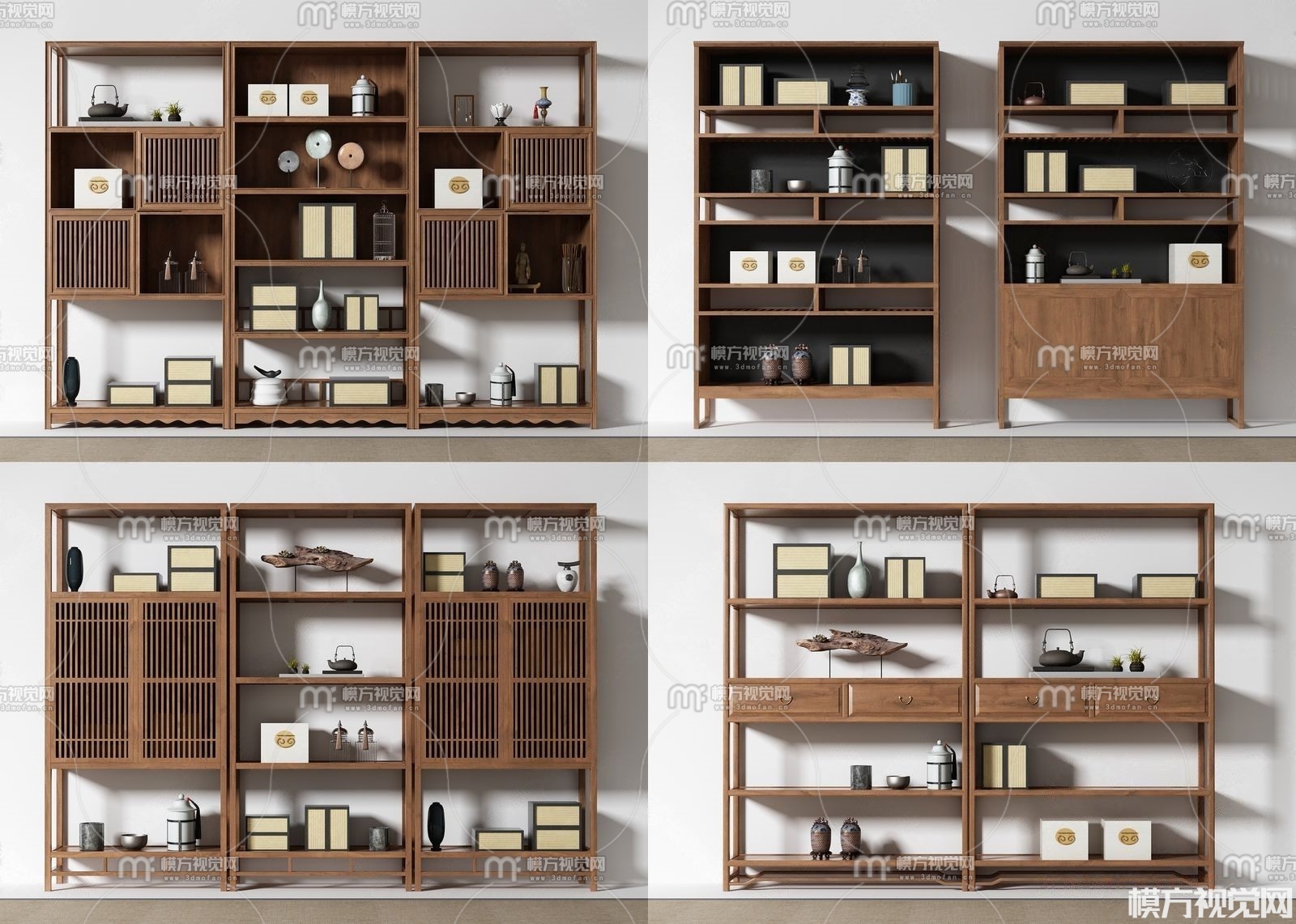 新中式博古架书柜组合3D模型(ID:0011345)