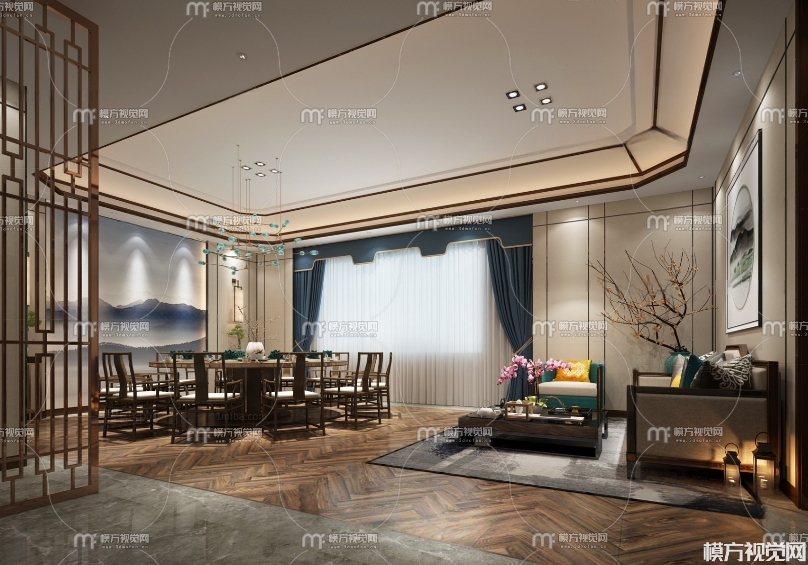 新中式餐厅包厢3D模型(ID:0011364)