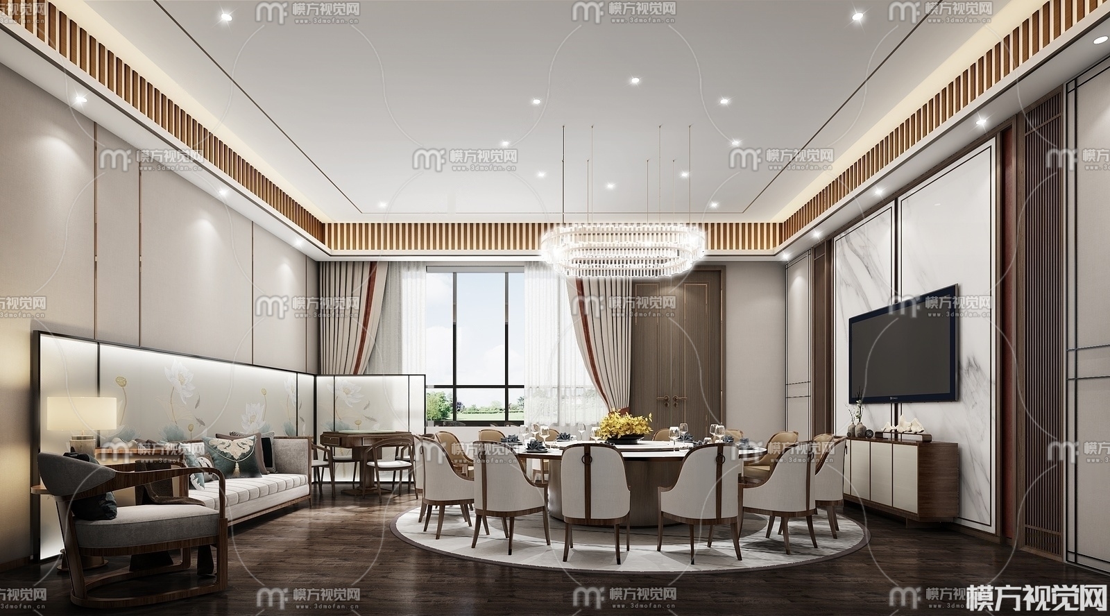 新中式餐厅包厢3D模型(ID:0011366)