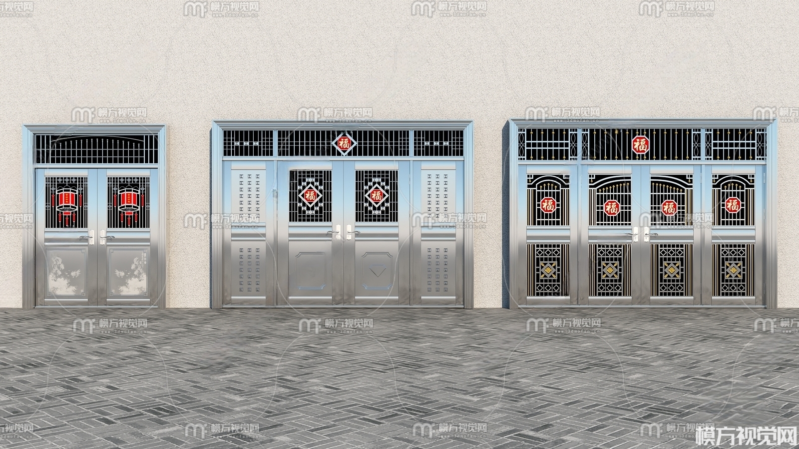 现代不锈钢门入户门3D模型(ID:0011570)