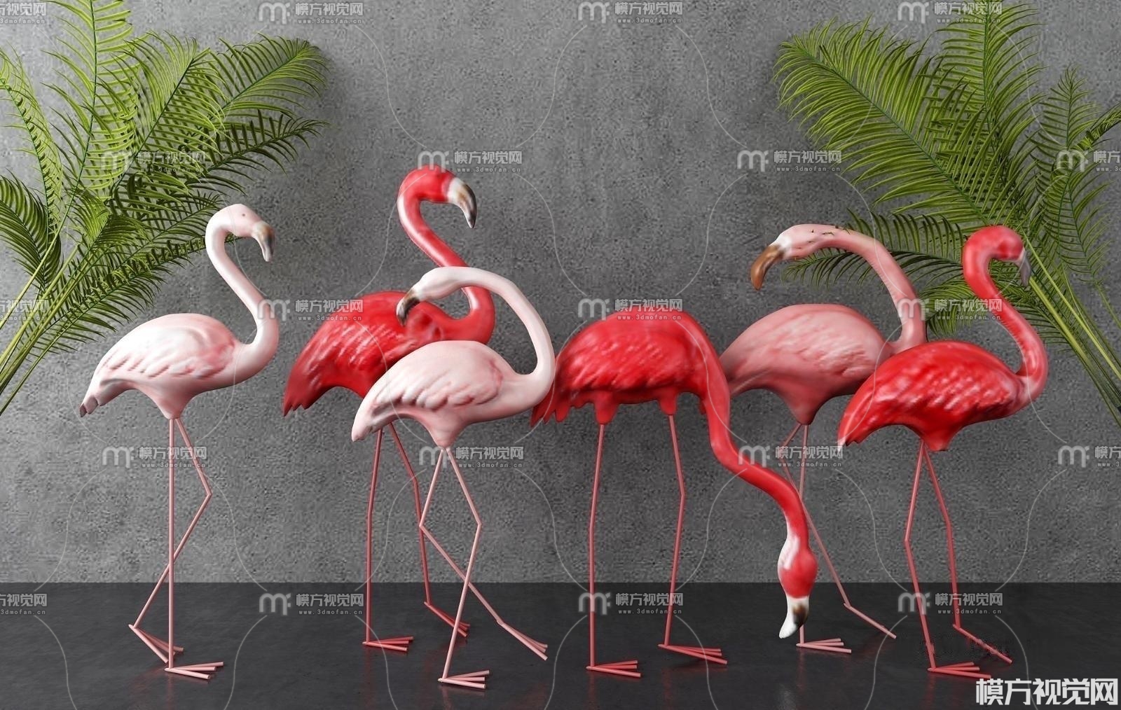 现代3网红火烈鸟摆件D模型(ID:0011594)