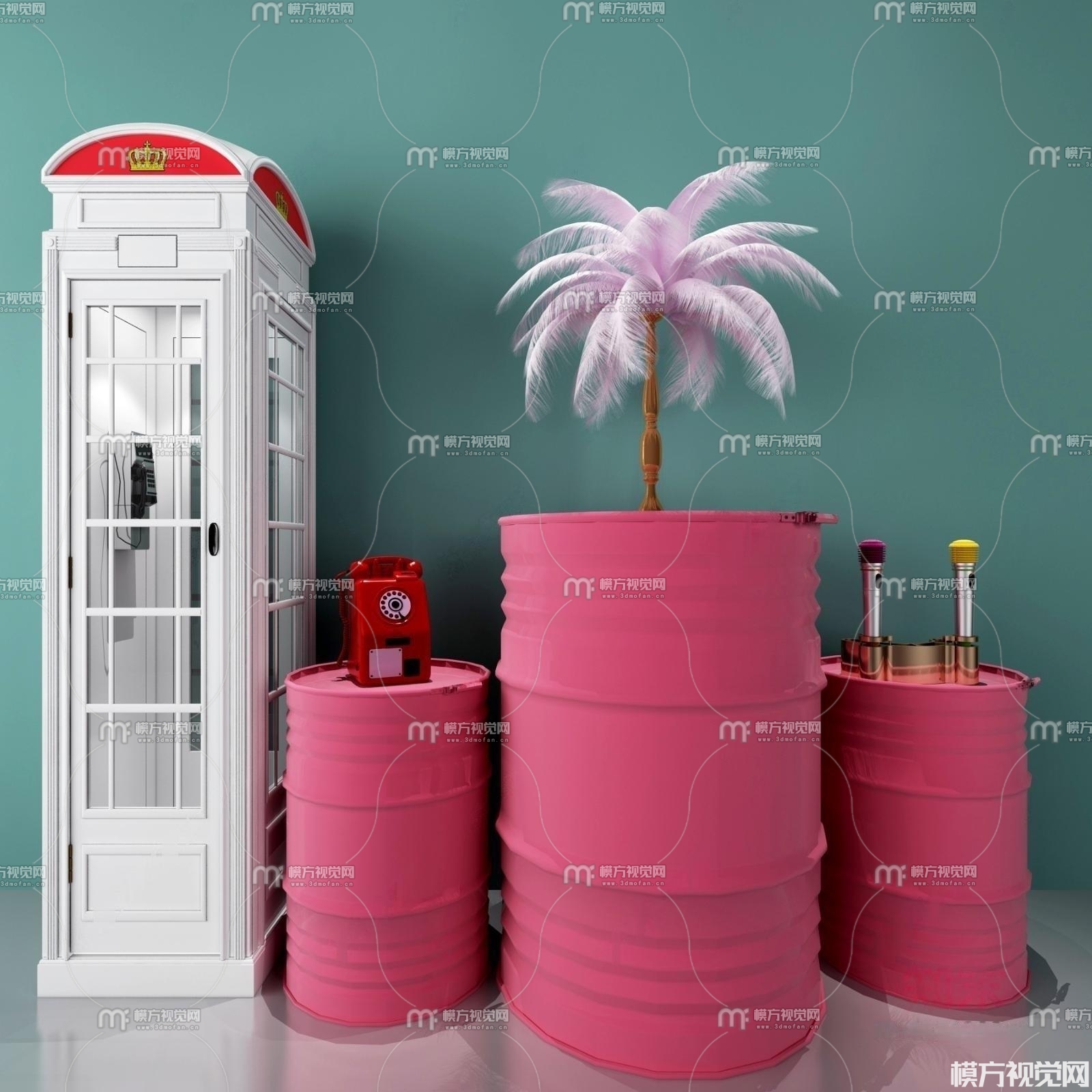 现代网红羽毛电话厅美陈3D模型(ID:0011595)