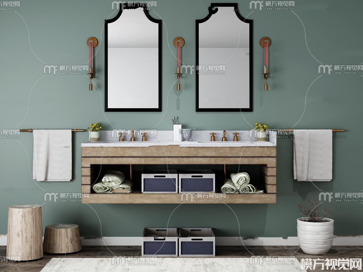 现代洗手台卫浴柜架组合3D模型(ID:0011638)