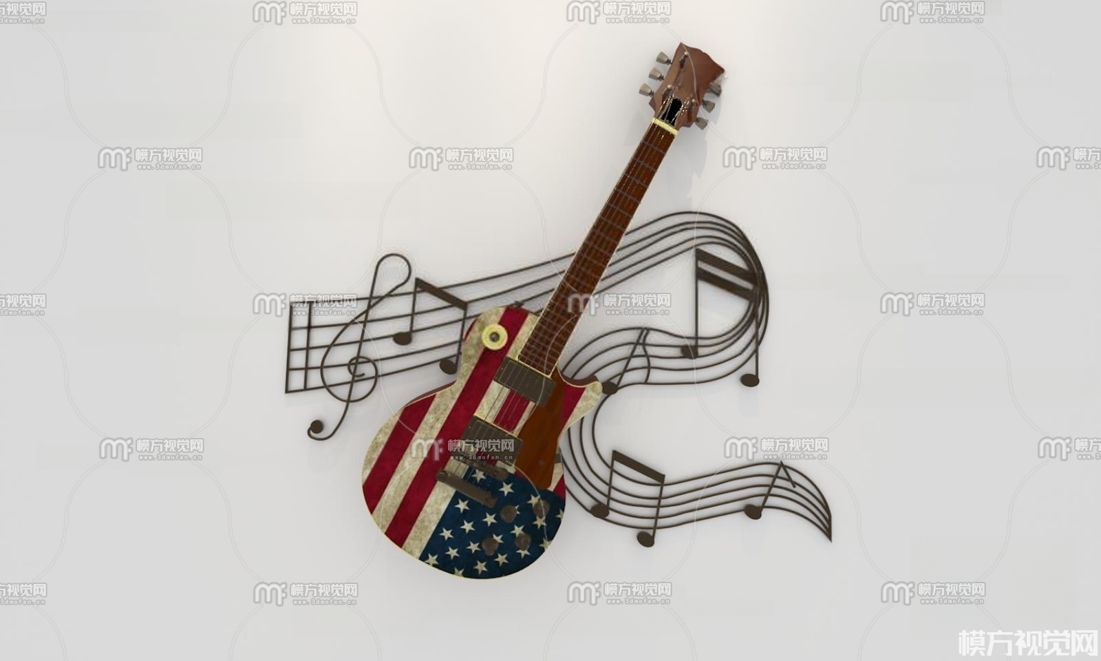 现代音乐器材吉他音符墙饰3D模型(ID:0011729)