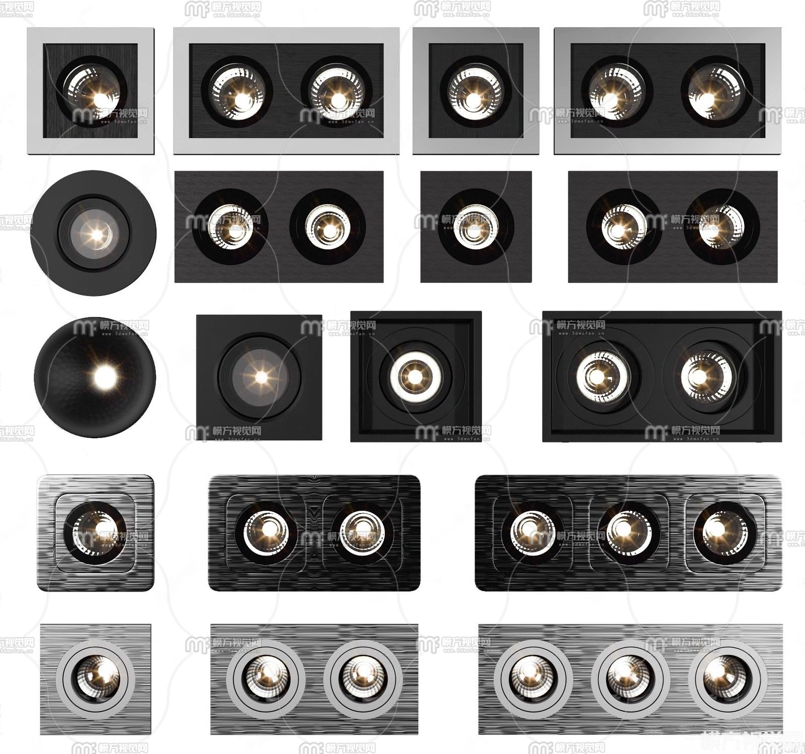 现代单头双头多头射灯组合3D模型(ID:0011738)