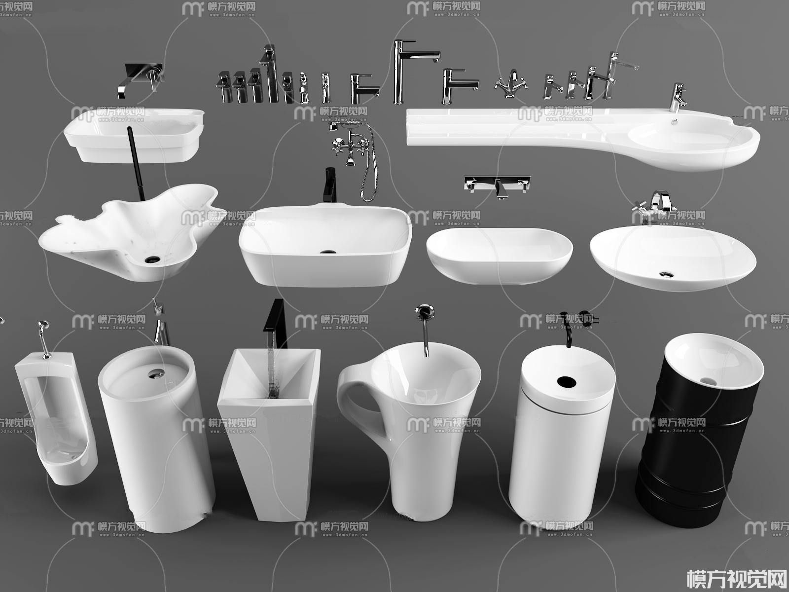 现代立柱台盆水龙头组合3D模型(ID:0011752)