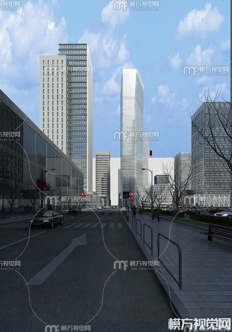 现代商业街道3D模型(ID:0001179)