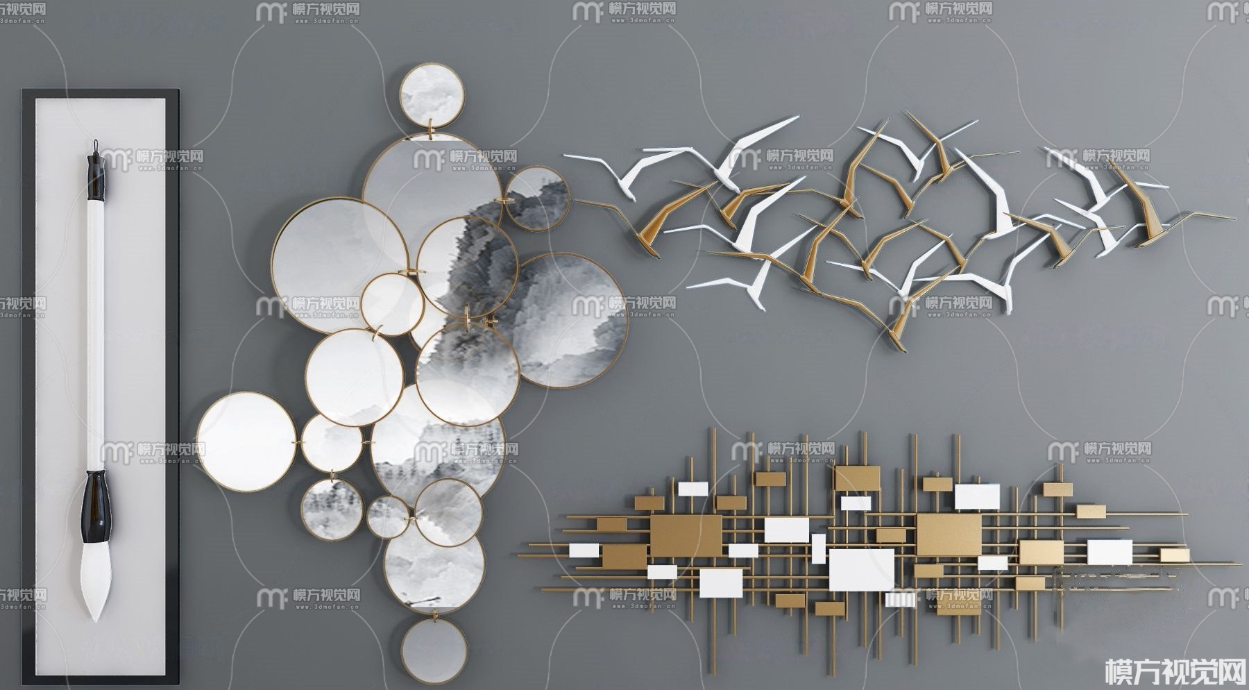 现代毛笔水墨画墙饰挂件3D模型(ID:0011791)