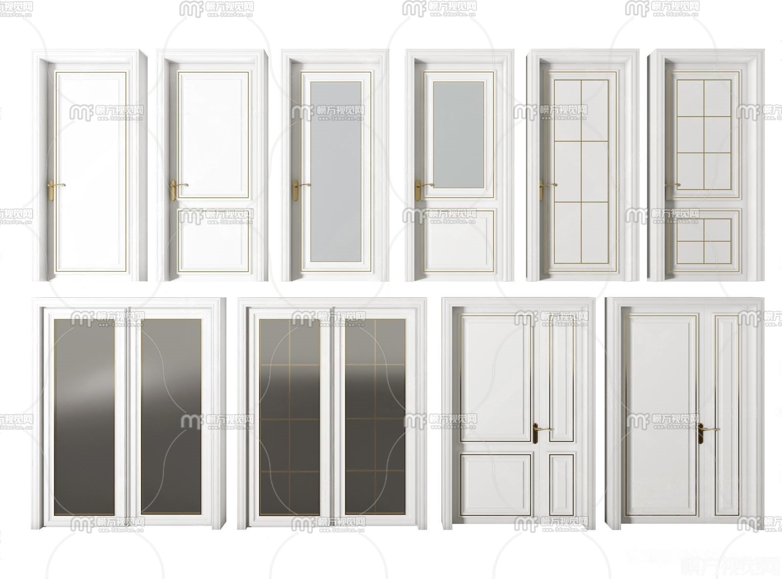 现代推拉门卫生间门组合3D模型(ID:0011820)