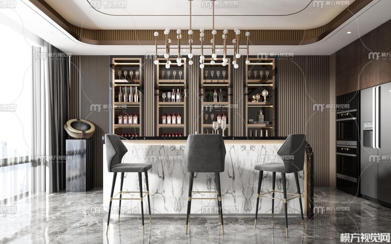 现代轻奢吧台酒柜3D模型(ID:0011901)