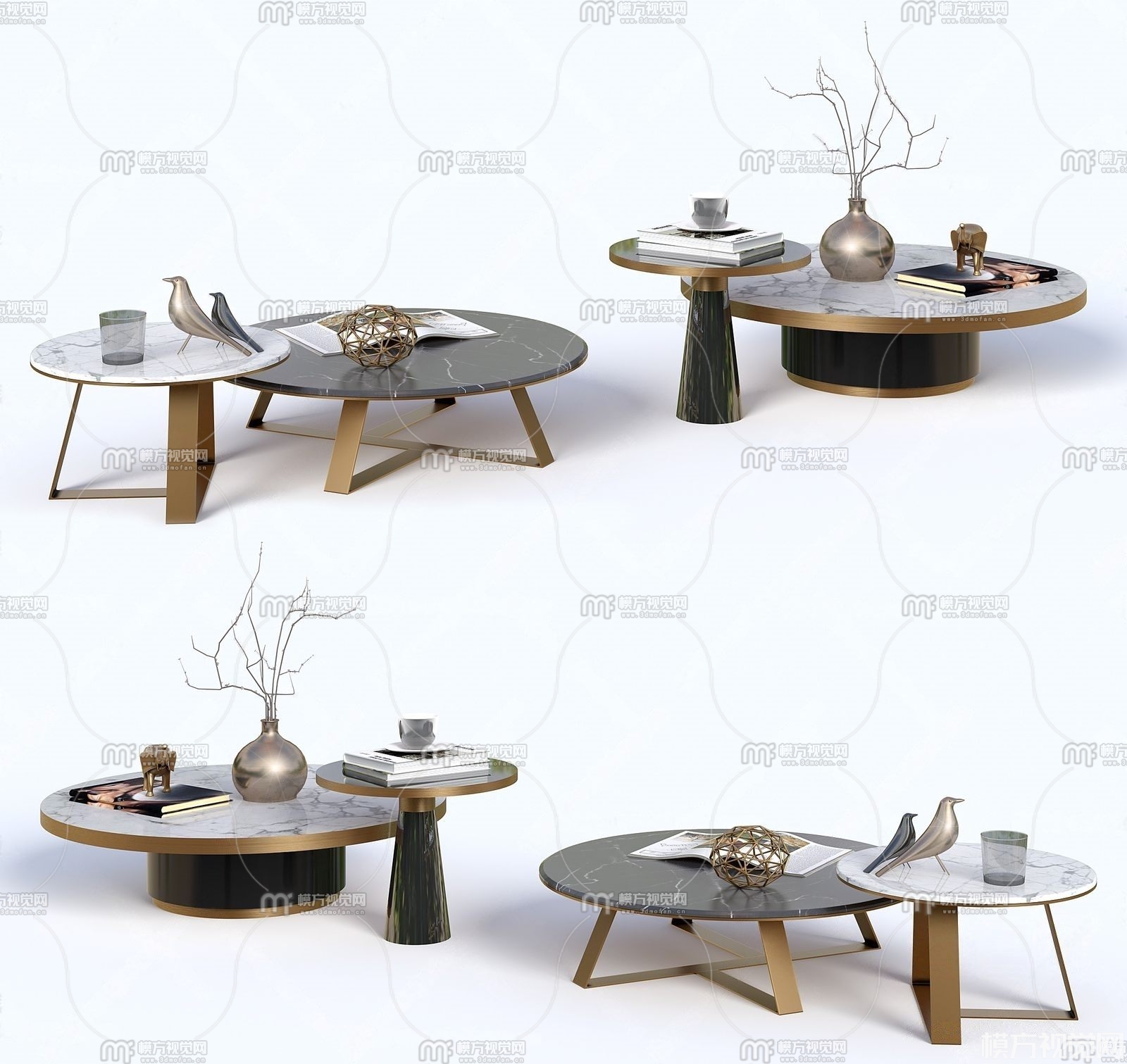 现代轻奢茶几摆件组合3D模型(ID:0011911)