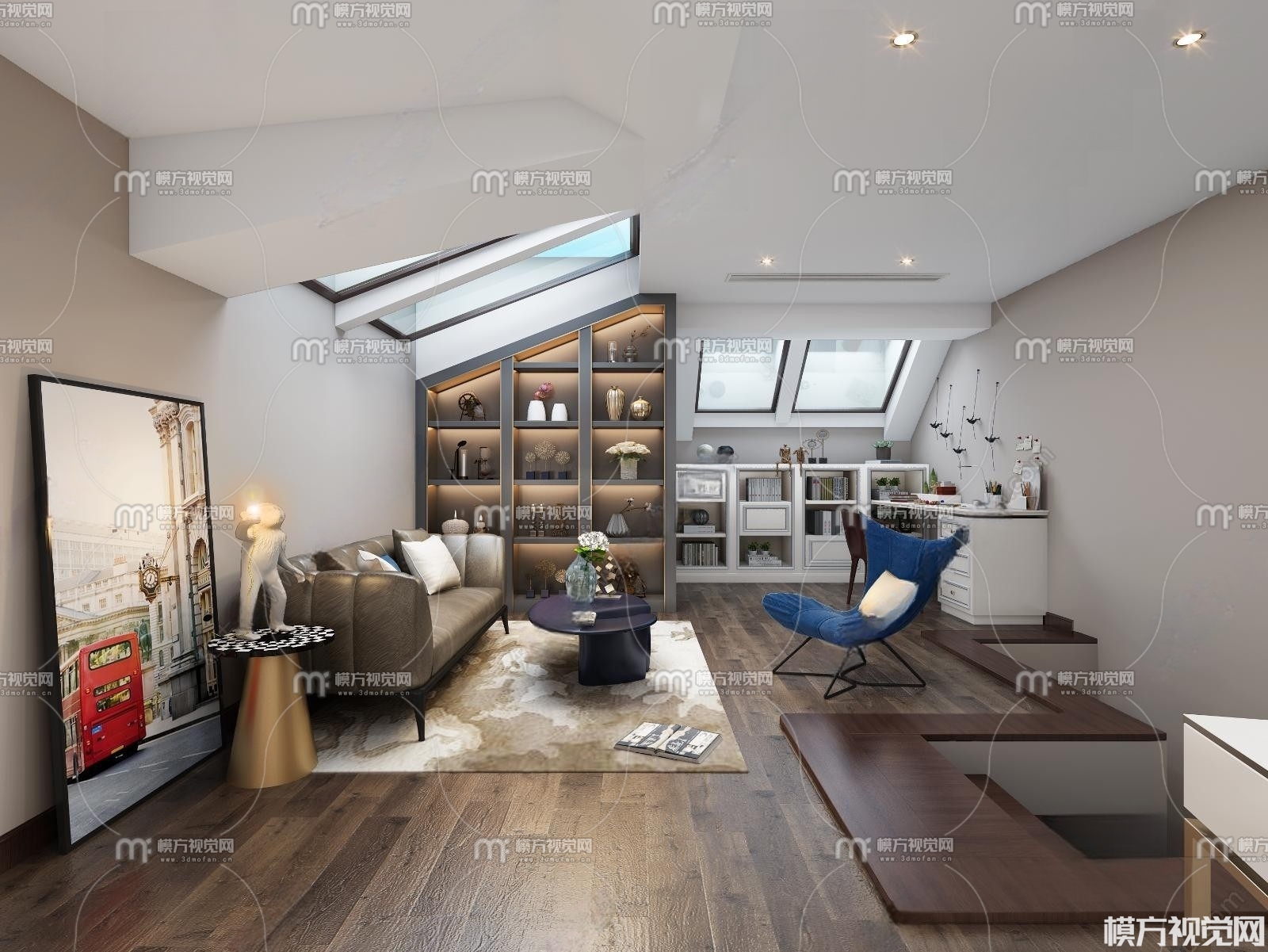 现代轻奢阁楼3D模型(ID:0011929)