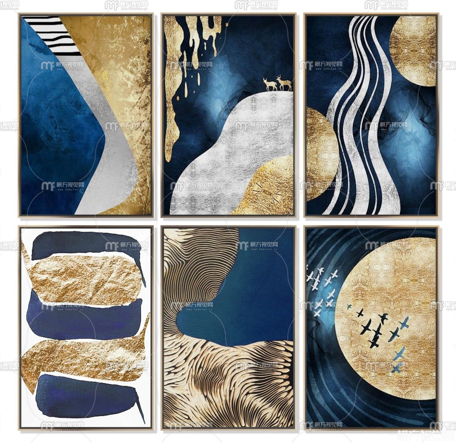 现代轻奢装饰画组合3D模型(ID:0011971)