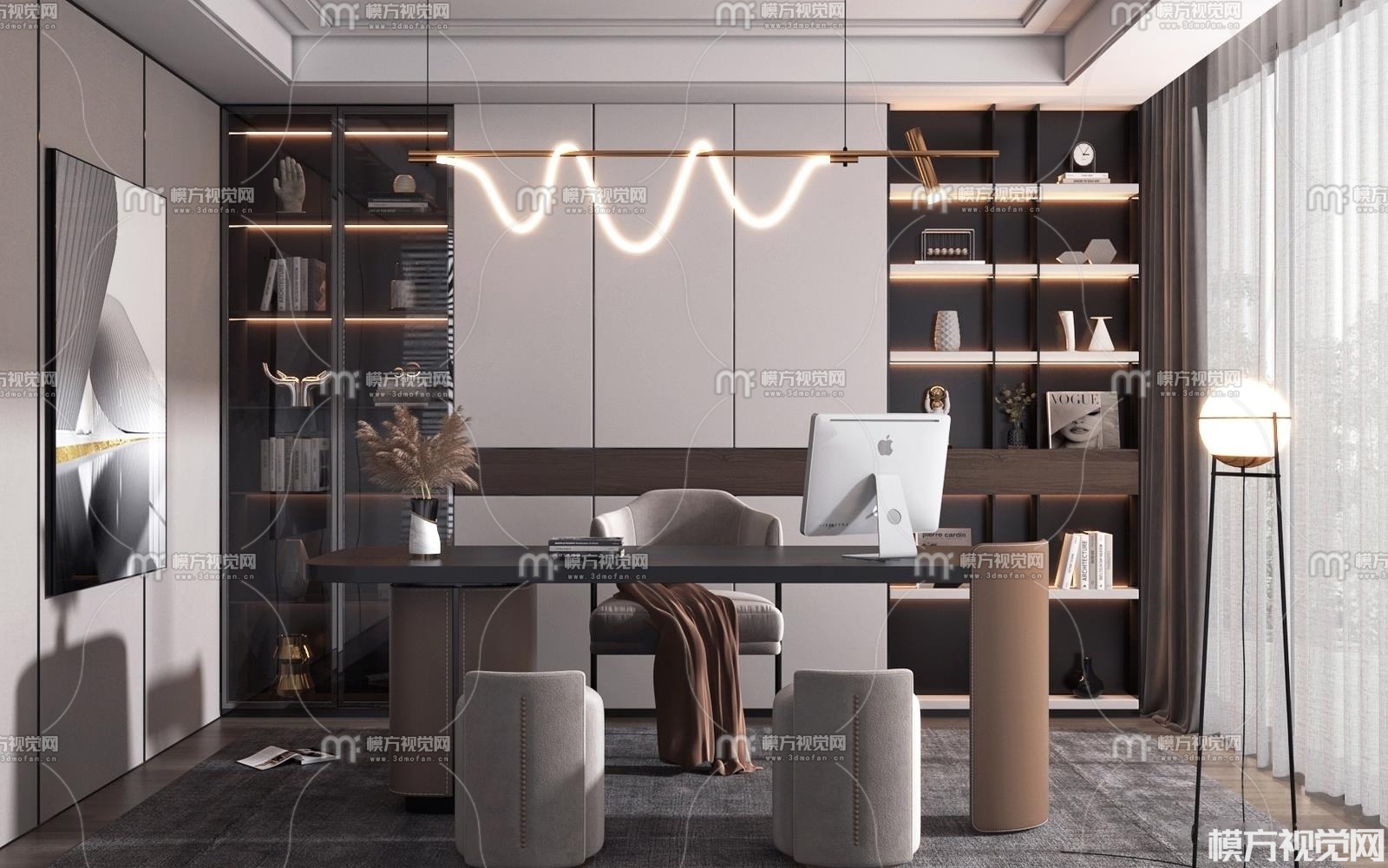 现代书房3D模型(ID:0012004)