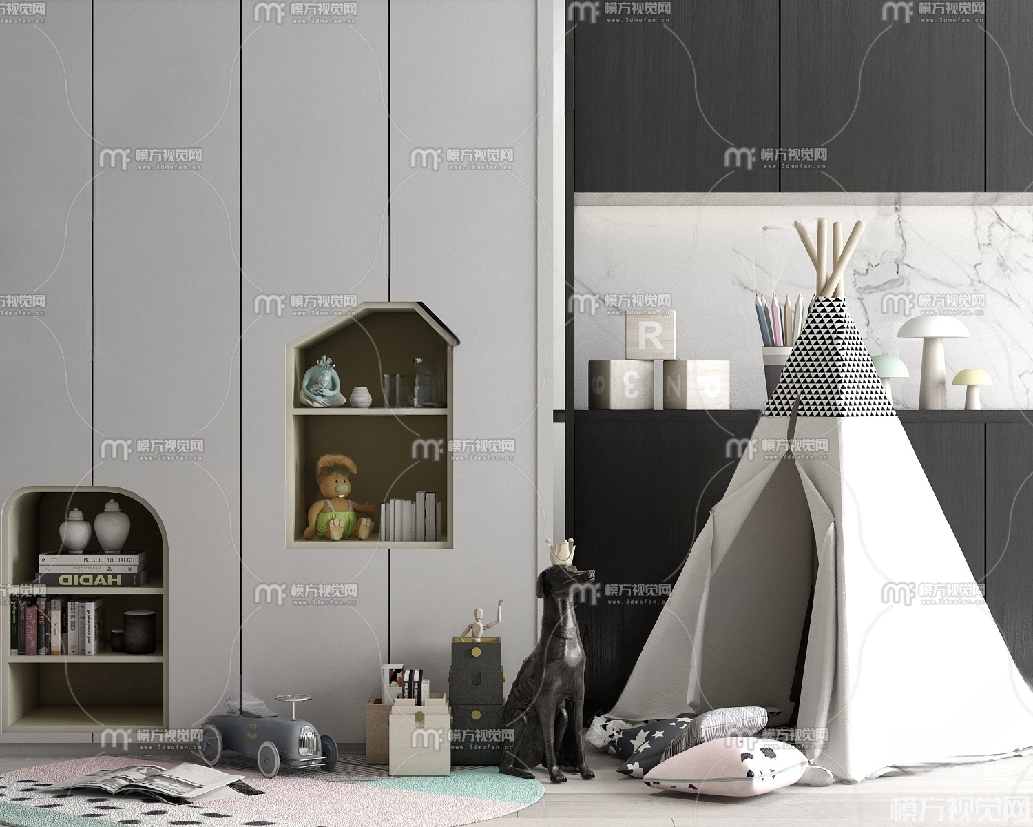 现代儿童陈设柜帐篷3D模型(ID:0012026)