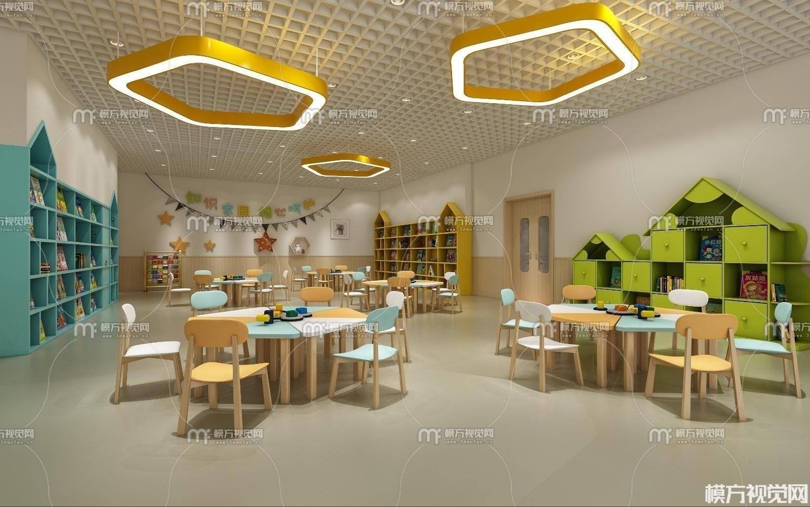 现代幼儿园阅览室3D模型(ID:0012039)