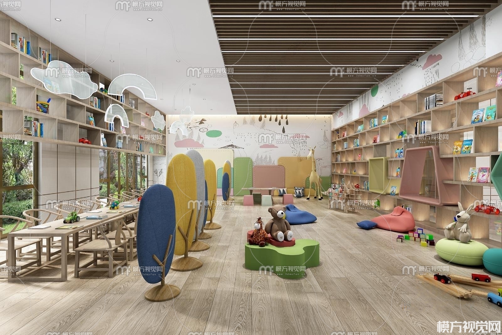 现代幼儿园阅览室3D模型(ID:0012040)