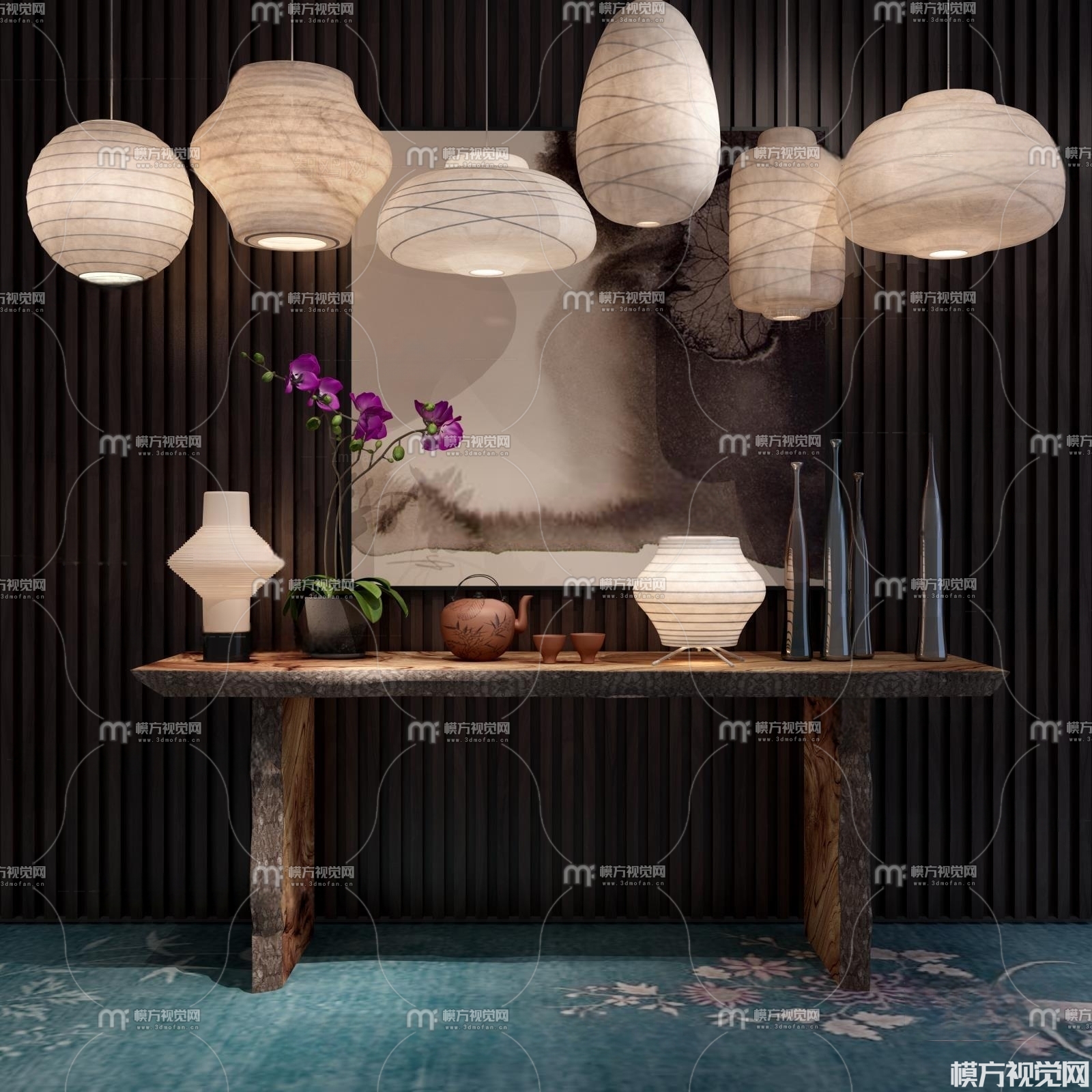新中式吊灯 条案组合3D模型(ID:0001206)