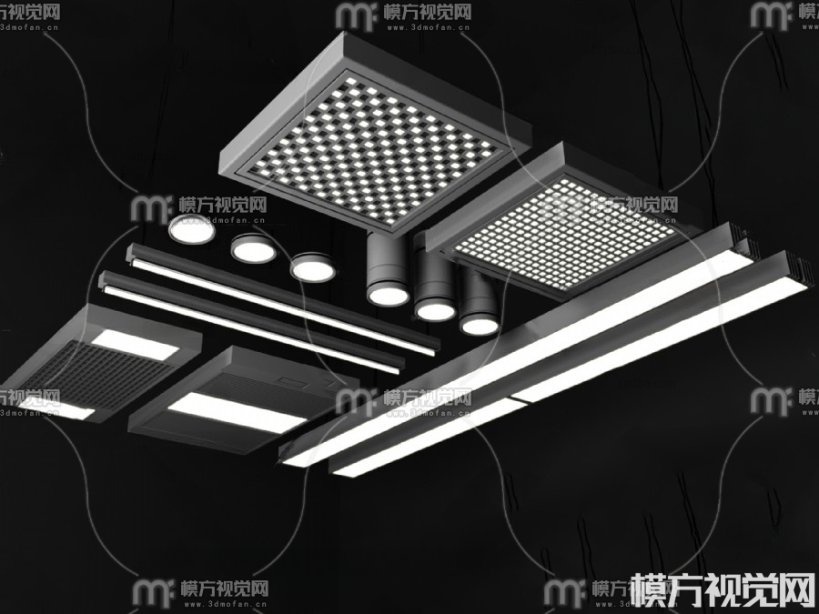 现代筒灯射灯格栅灯3D模型(ID:0012077)