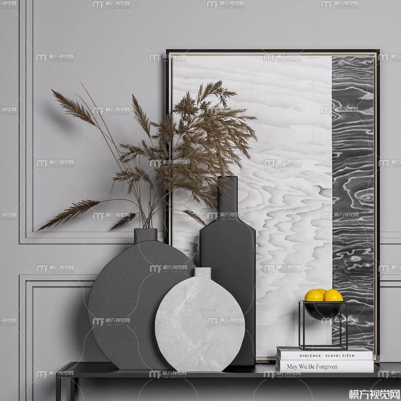 现代装饰画花瓶饰品3D模型(ID:0012119)