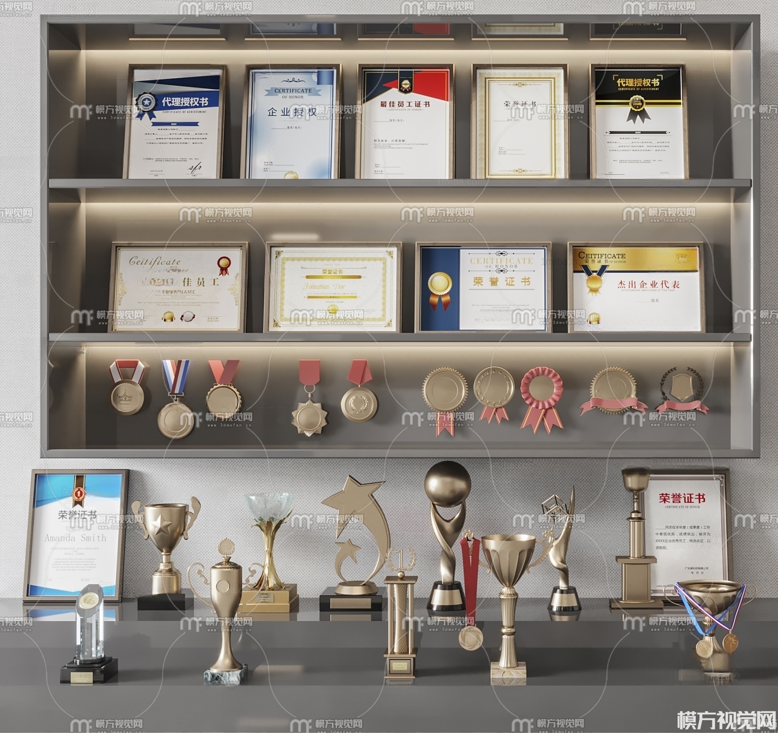 现代奖杯奖牌证书3D模型(ID:0012204)