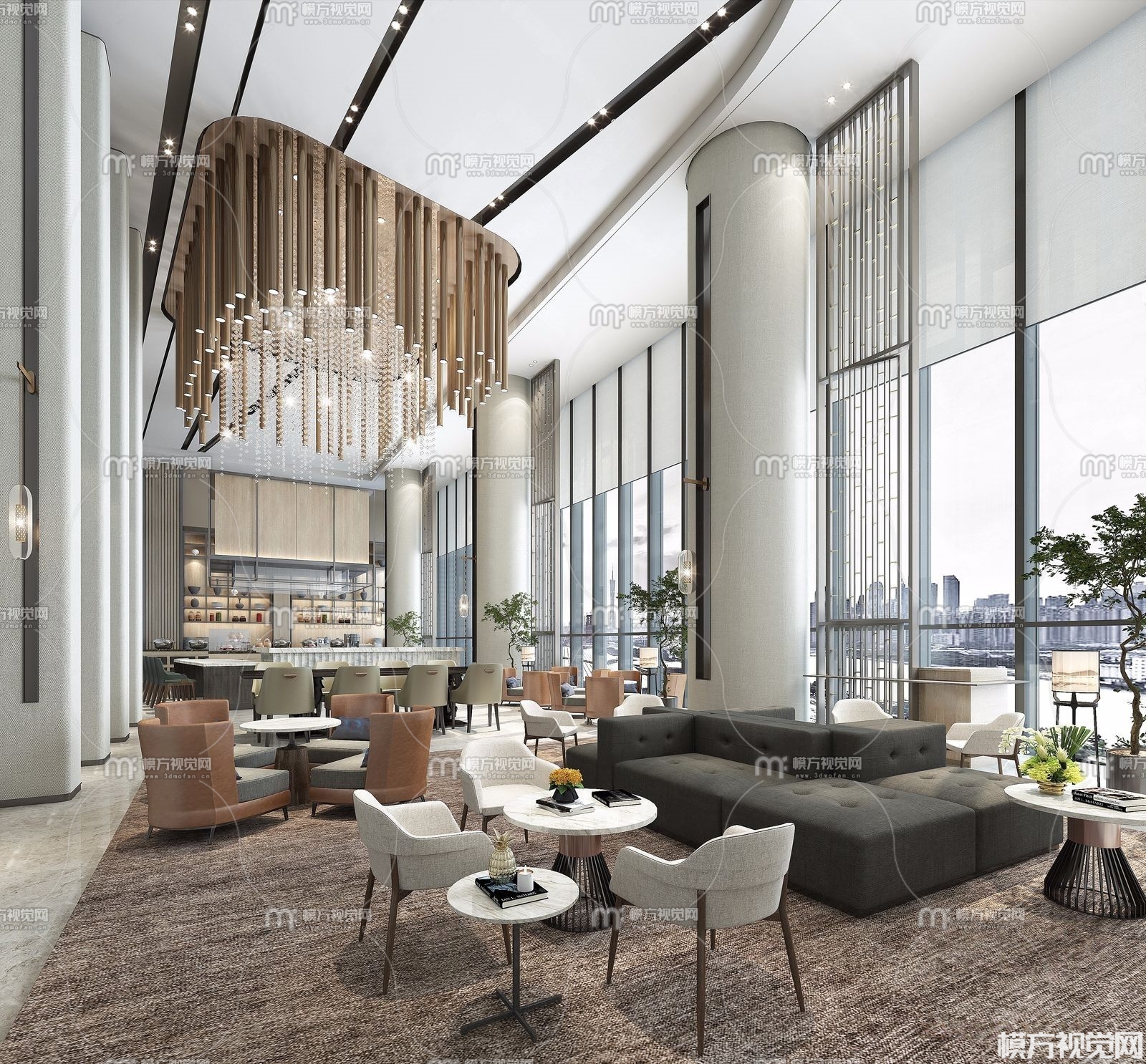 现代酒店大堂休息区3D模型(ID:0012245)