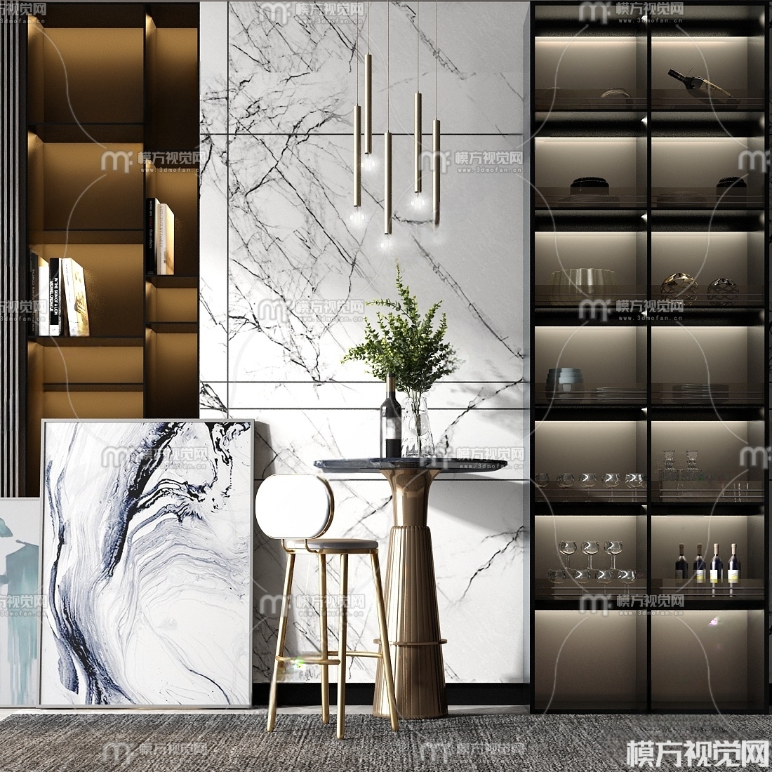 现代酒柜桌椅组合3D模型(ID:0012265)