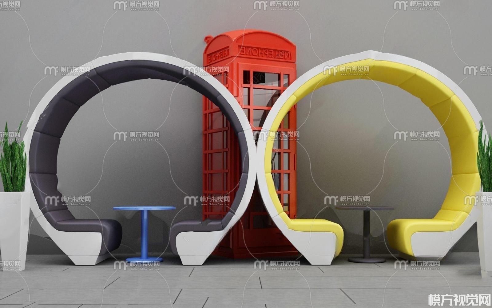 现代卡座沙发电话亭组合3D模型(ID:0012276)