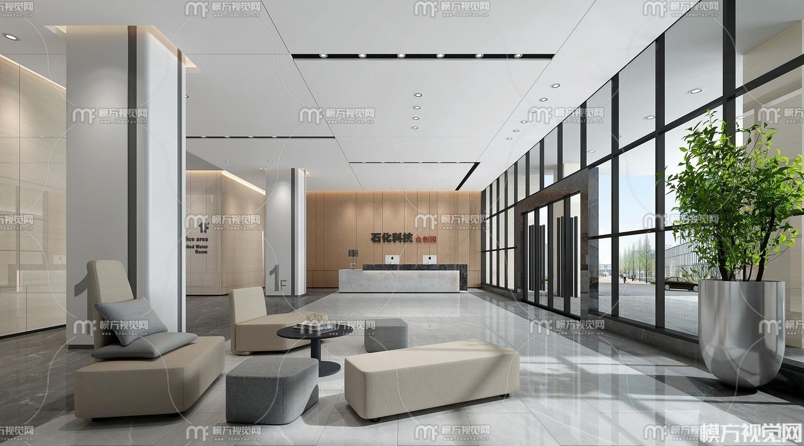 现代办公大厅前台3D模型(ID:0012295)