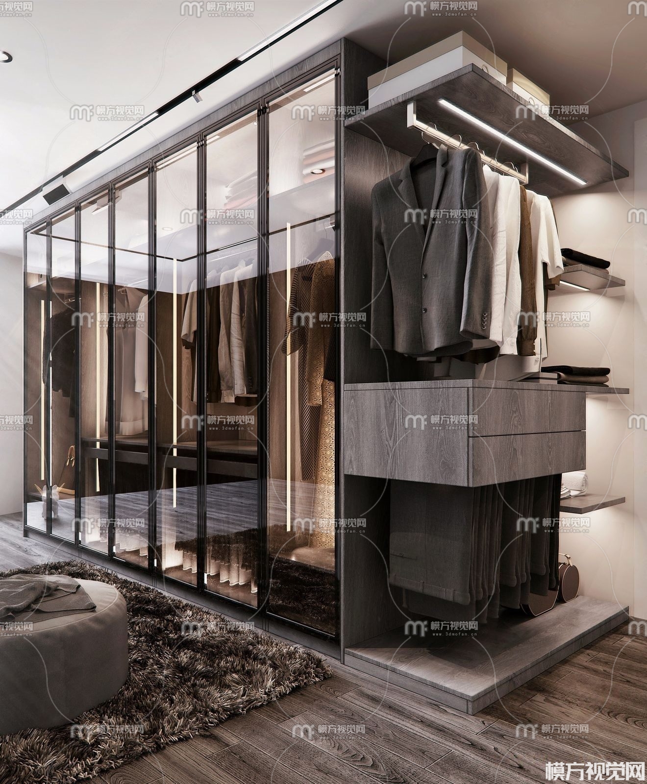 现代衣帽间3D模型(ID:0012334)