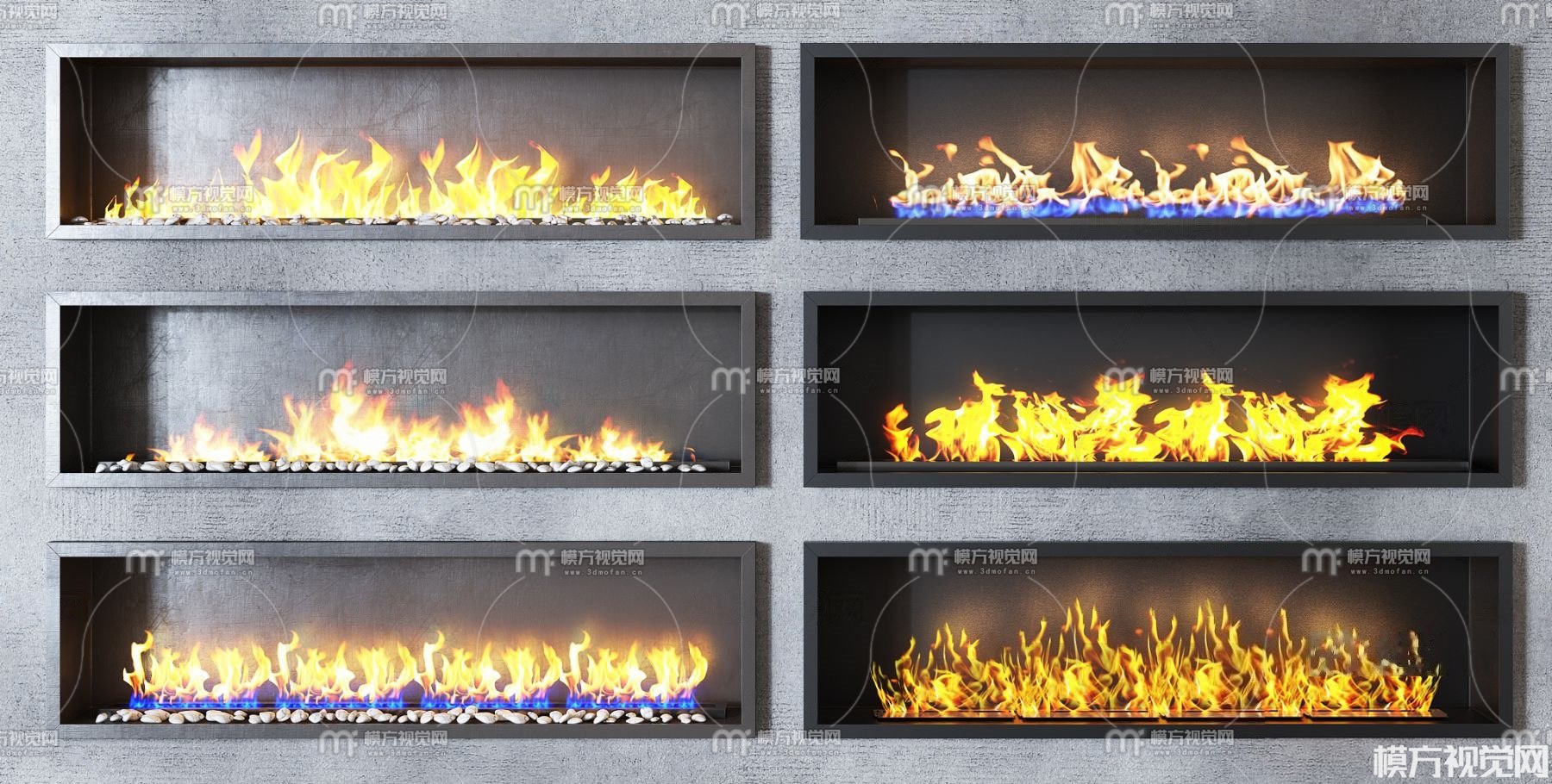 现代壁炉火焰火堆组合3D模型(ID:0012352)