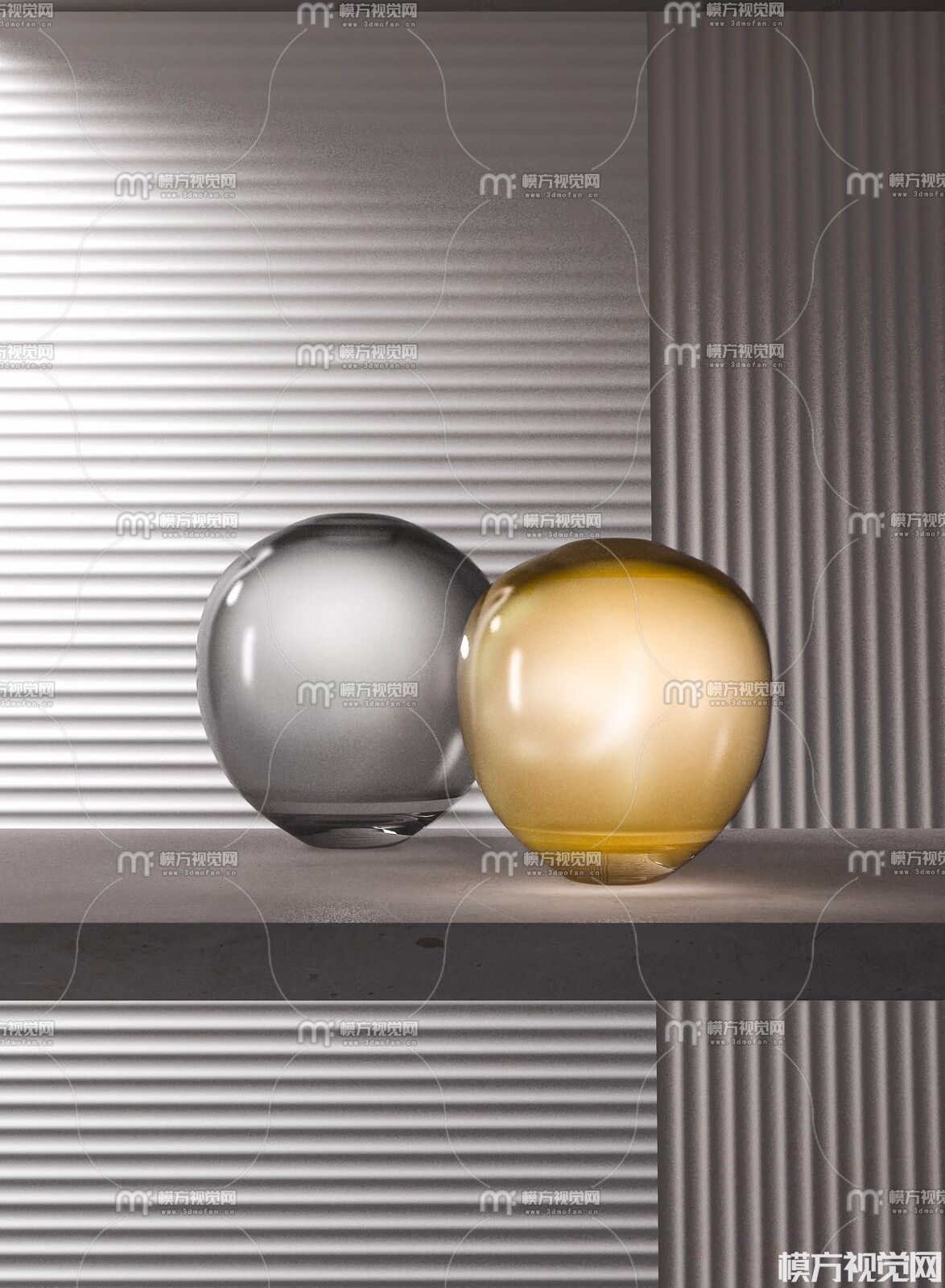 现代玻璃玻璃器皿摆件3D模型(ID:0012405)
