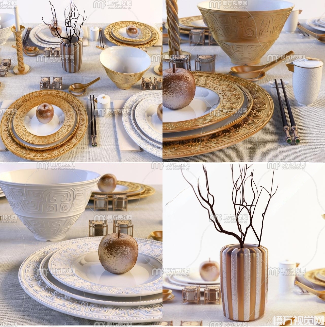 现代餐具盘子筷子组合3D模型(ID:0012419)