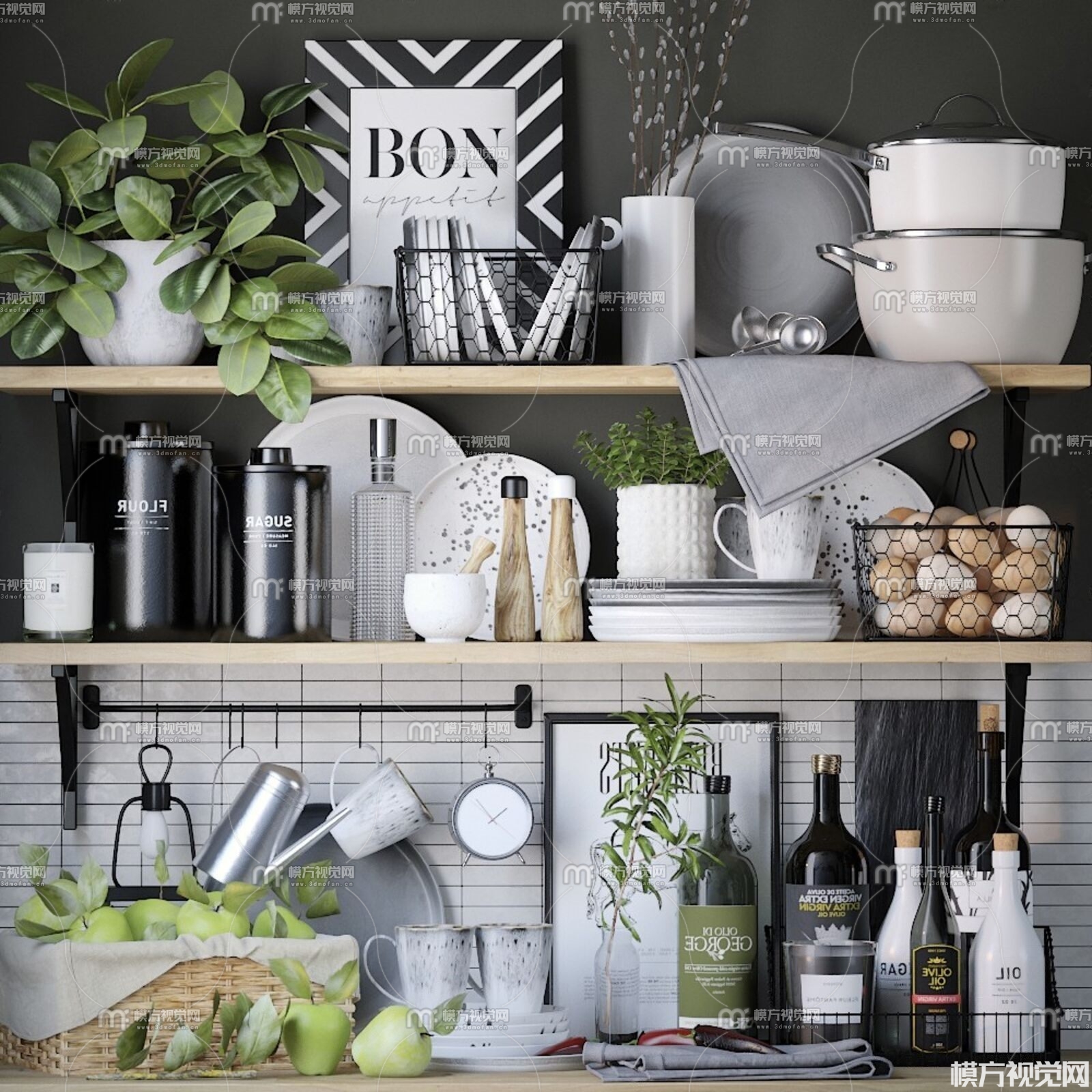现代厨具餐具组合3D模型(ID:0012466)