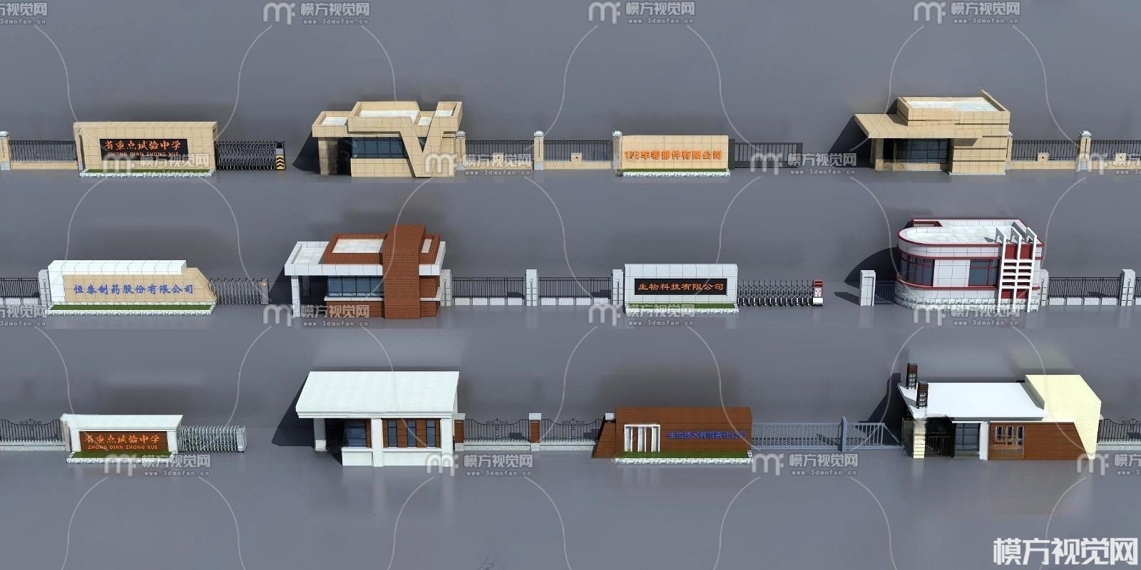 现代大门门卫保安亭入口3D模型(ID:0012488)