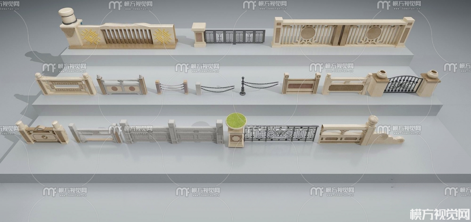 欧式栏杆护栏组合3D模型(ID:0012659)