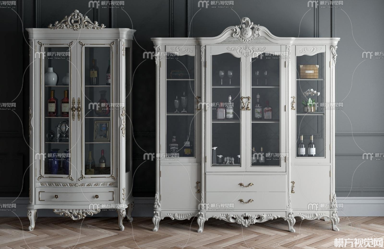 式实木雕花酒柜组合3D模型(ID:0012679)