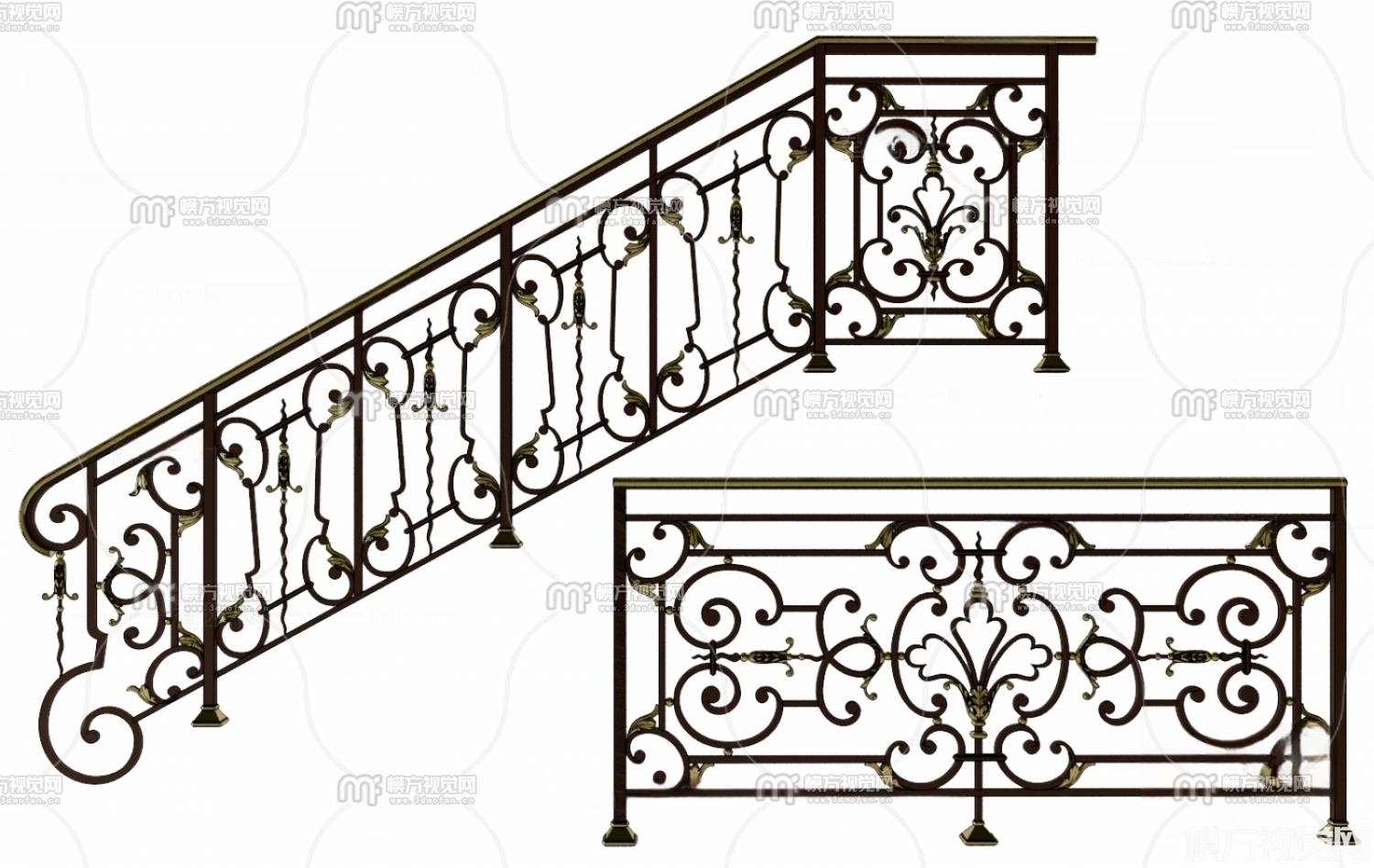 欧式铁艺雕花护栏楼梯栏杆3D模型(ID:0012692)