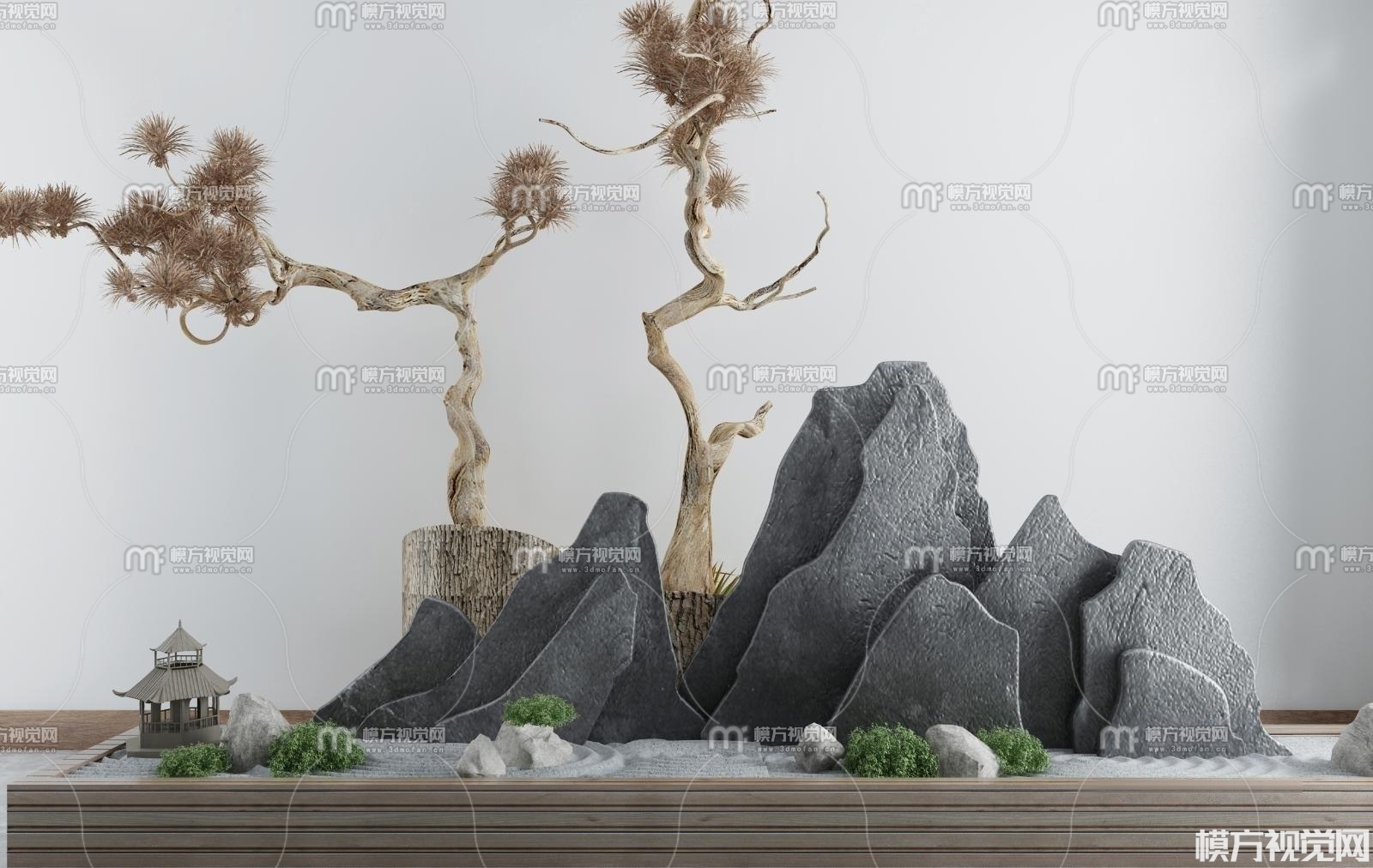 日式假山庭院枯山水石景观小品3D模型(ID:0012740)