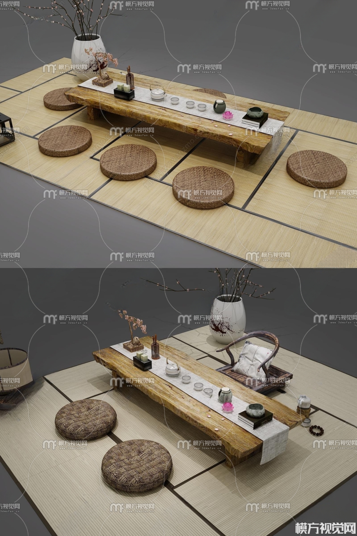 日式榻榻米茶桌椅3D模型(ID:0012752)