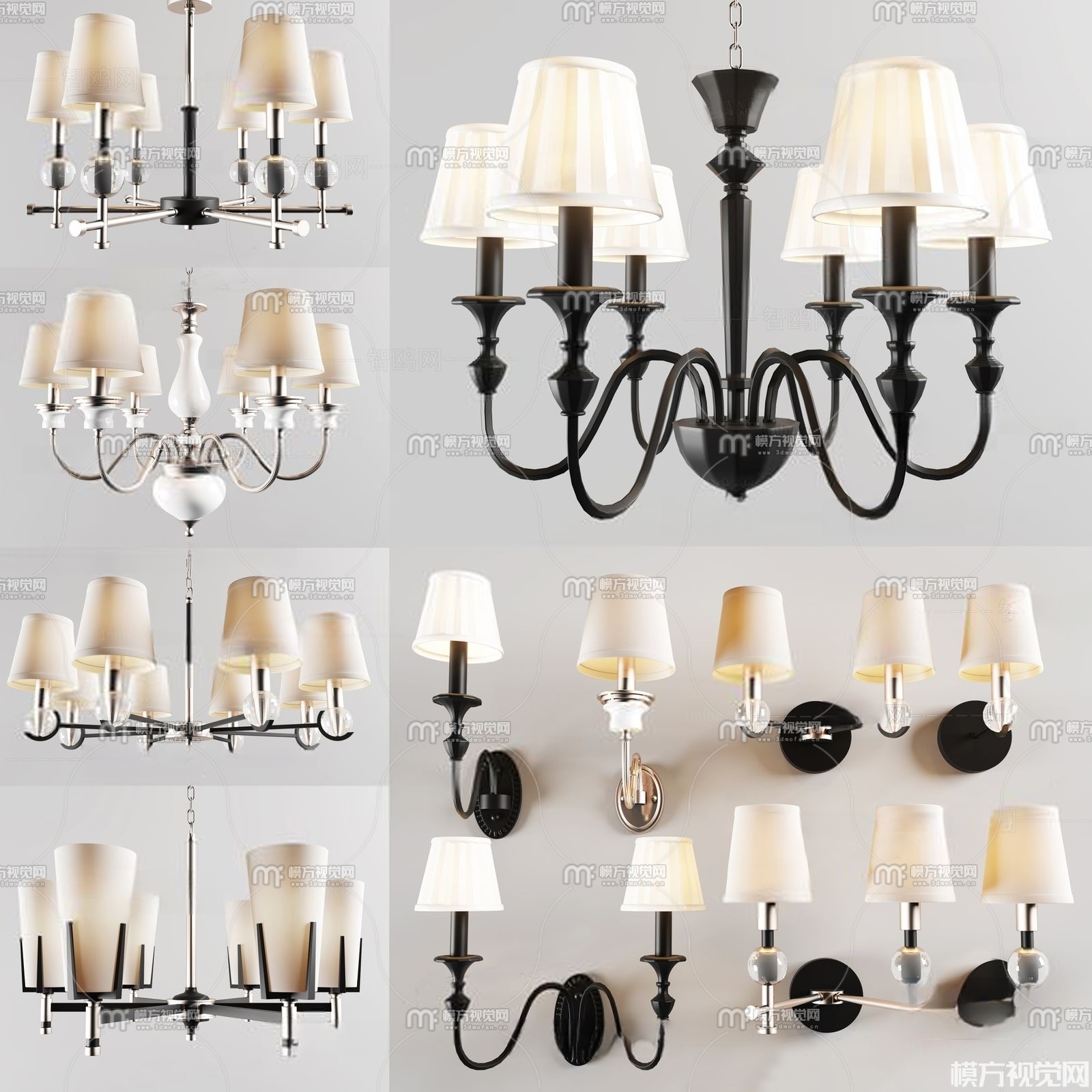 简欧吊灯 壁灯组合3D模型(ID:0001279)