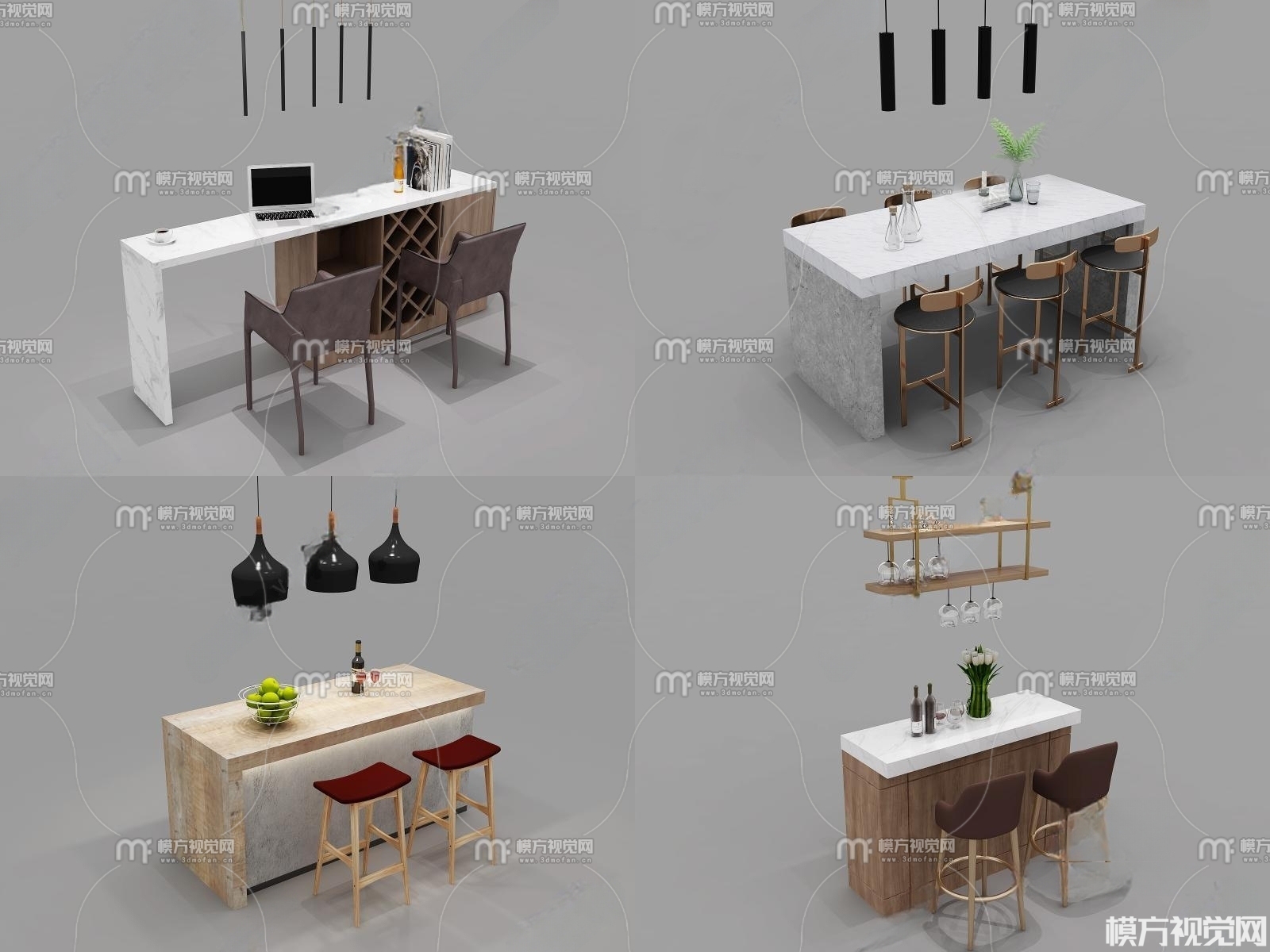 现代吧台吧椅组合3D模型(ID:0012848)